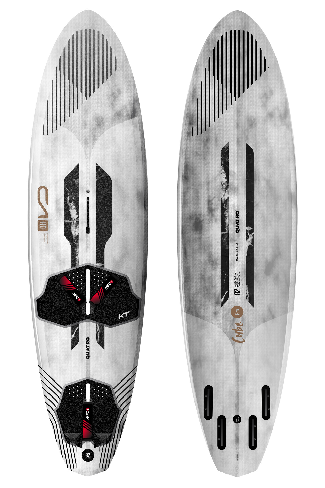 On the underside, the Cube Pro features a vee double concave to a vee in the tail, along with adequate tail and nose kick – as expected from a wave board designed for control – although still nothing overly aggressive, which results in a faster overall rocker line. It is set up solely as a quad and is supplied with a set of four MFC fins, while it is available in Quatro’s Pro Carbon Monocoque construction. The overall colour and finish might not immediately catch your eye, or make your heart skip a beat, but the subtle differences compared to others in the line-up might just be what makes you fall head over heels for the Cube Pro.