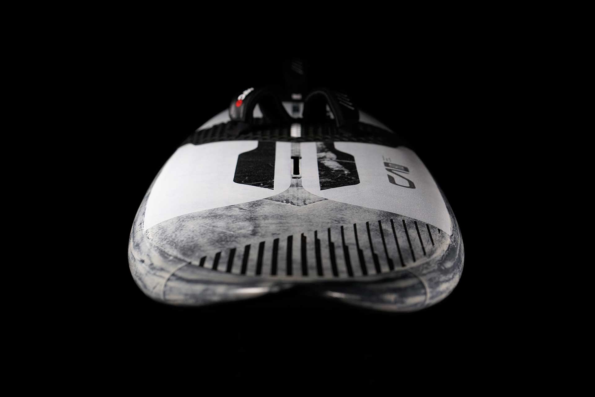This suggests the board will generate good speed whilst not reducing the Power’s wave sailing capabilities. Looking at the bottom shape, a subtle vee and double concave run throughout to keep the low end smooth and maintain its high-speed performance. The board’s outline is very curved, suggesting that the Power will possess some good turning ability. Complimenting this is the board’s tail rocker, which is fast and hints that the board will love some back-footed drive through the turns.