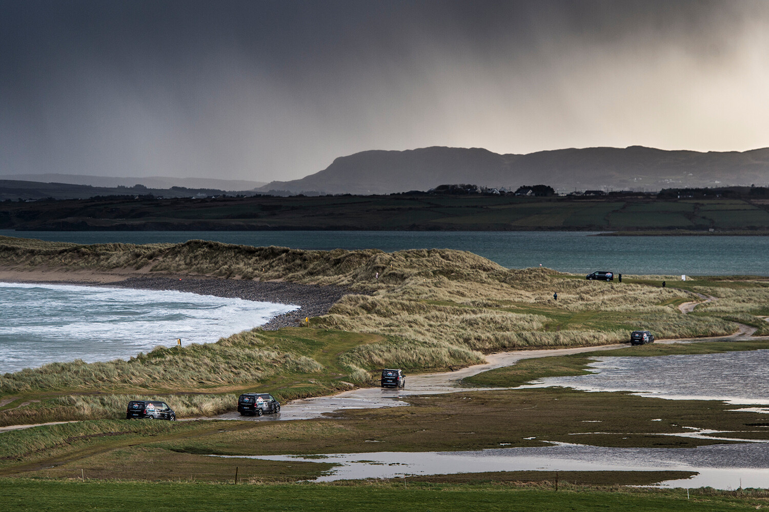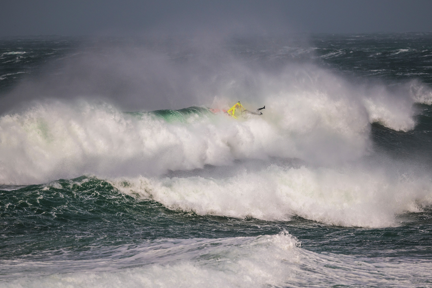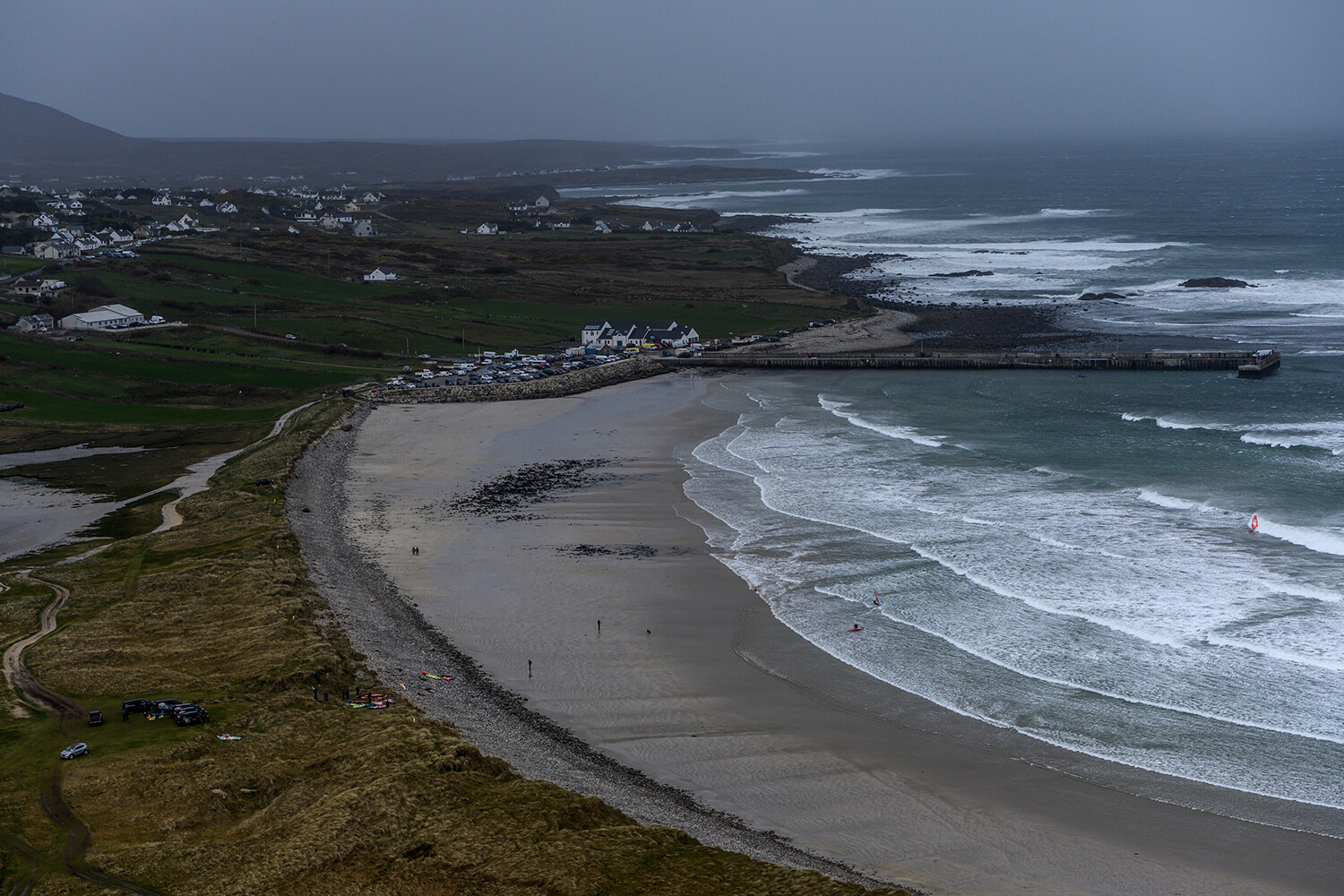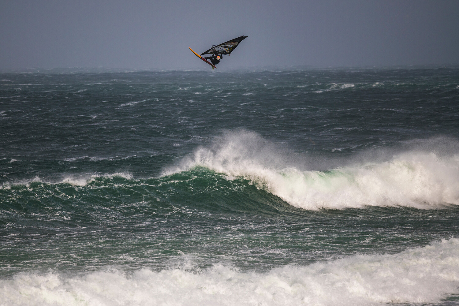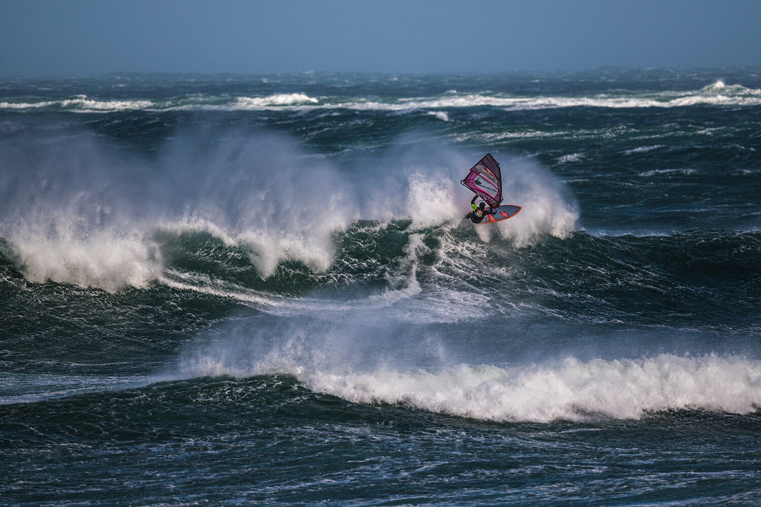 Although there was a warm-up day on Saturday, and a first day of competition on Sunday, alleyes were on ‘Big Tuesday’ when wind and waves were expected to peak. Driving over the hill in front of Magheroarty Beach, conditions initially looked calm – but quickly ramped up to the real deal as the tide dropped and the wind increased. As helicopter and jetski safety crews looked on, competition got underway.