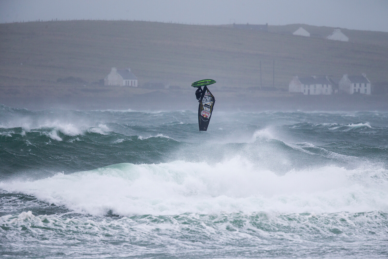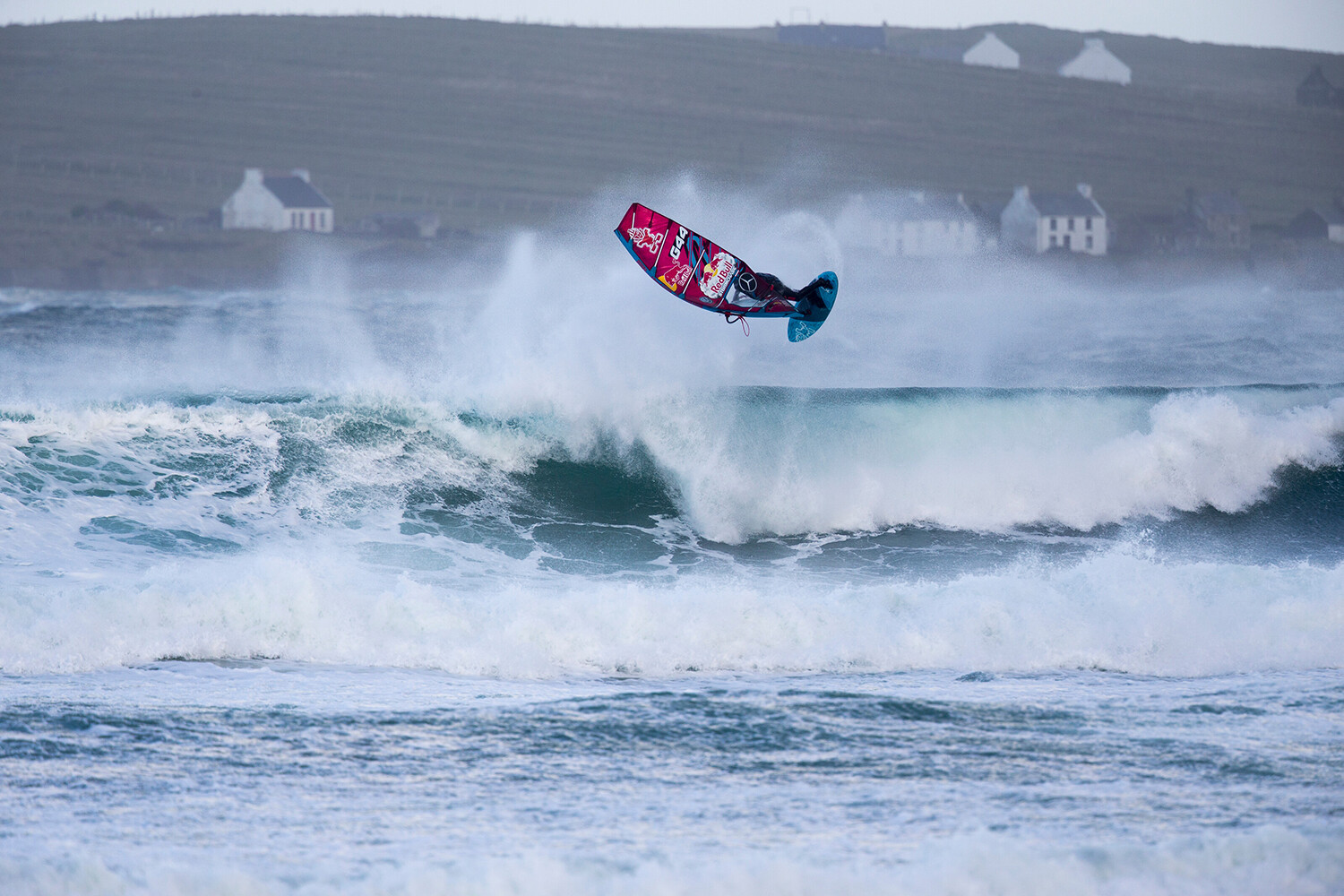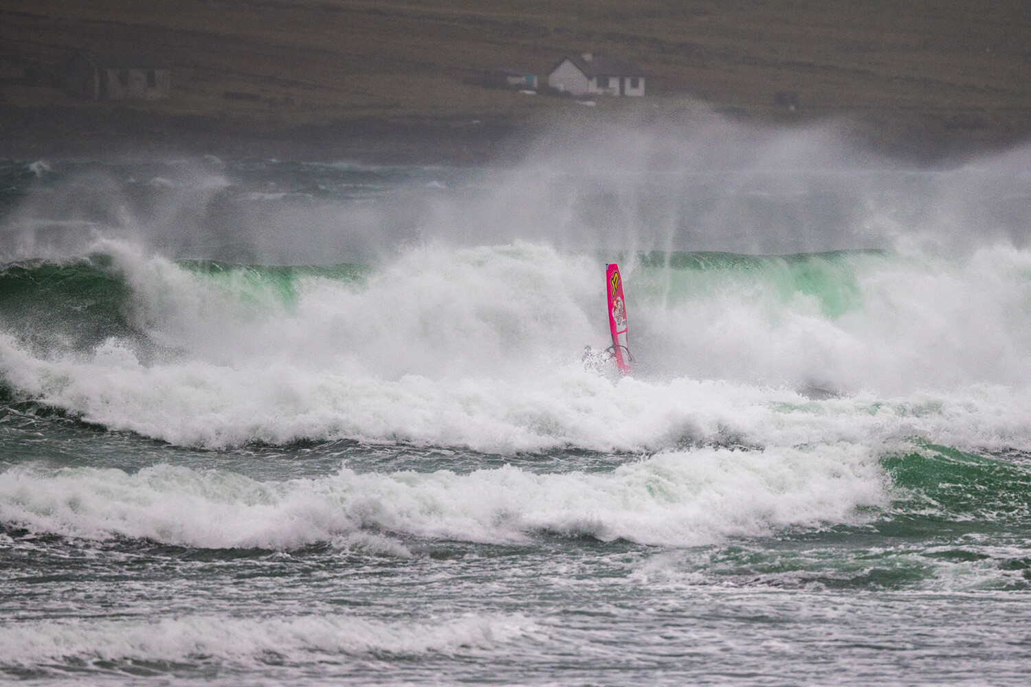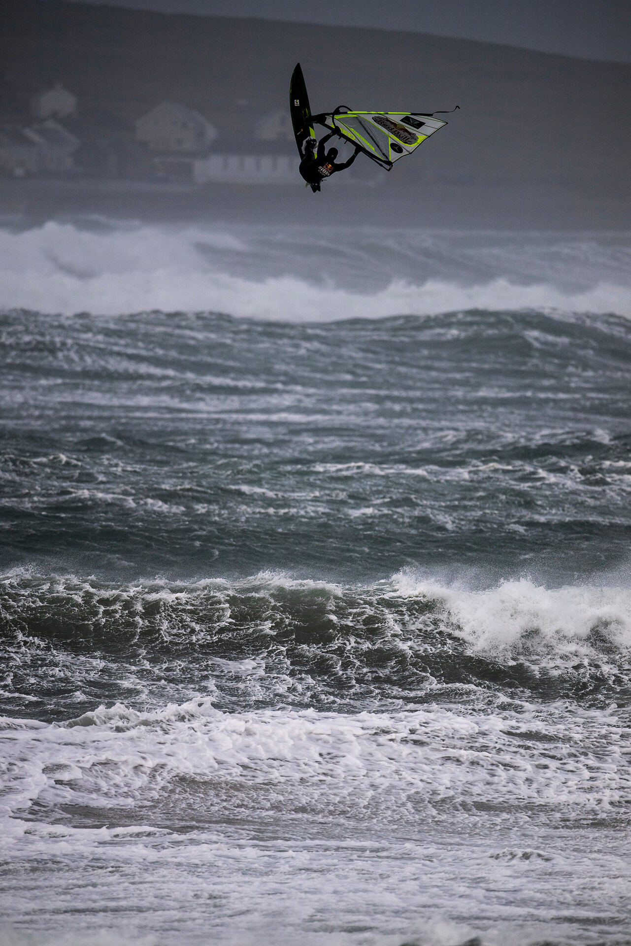 March 12th – The powerful forces of a massive North Atlantic storm battered the beaches of northwestern Ireland. Eight world-class windsurfers, who had traveled in from all corners ofthe globe, braved the wind and waves for Red Bull Storm Chase, the world’s toughestwindsurfing contest. Having waited over three years for such a storm to arrive, the competitors and crew could hardly believe their eyes at the conditions in front of them.
