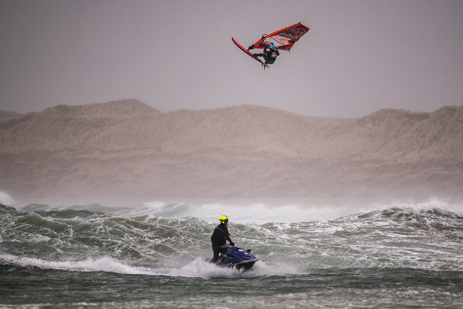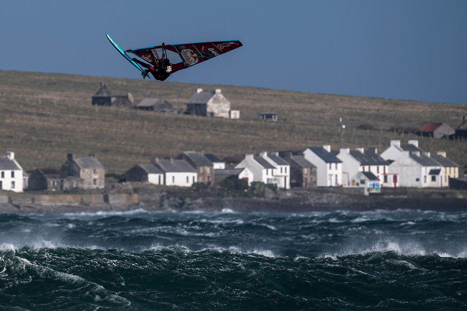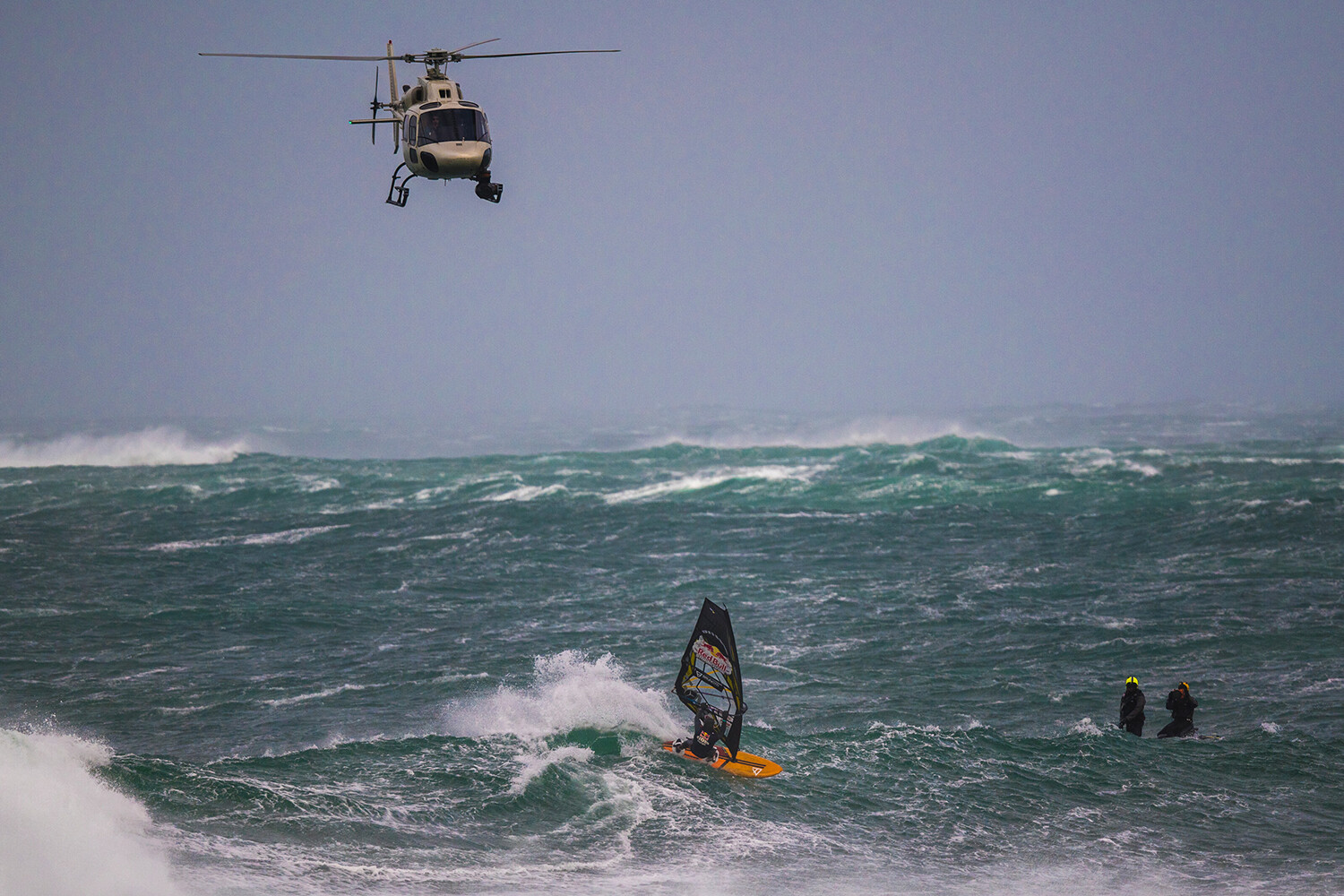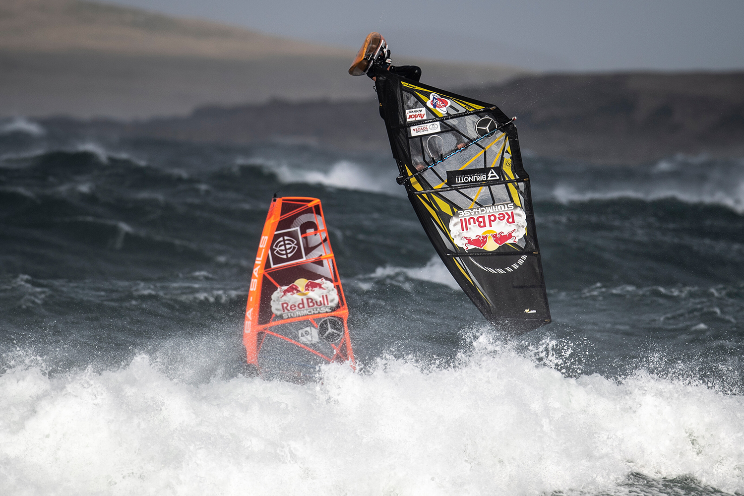 March 12th – The powerful forces of a massive North Atlantic storm battered the beaches of northwestern Ireland. Eight world-class windsurfers, who had traveled in from all corners ofthe globe, braved the wind and waves for Red Bull Storm Chase, the world’s toughestwindsurfing contest. Having waited over three years for such a storm to arrive, the competitors and crew could hardly believe their eyes at the conditions in front of them.