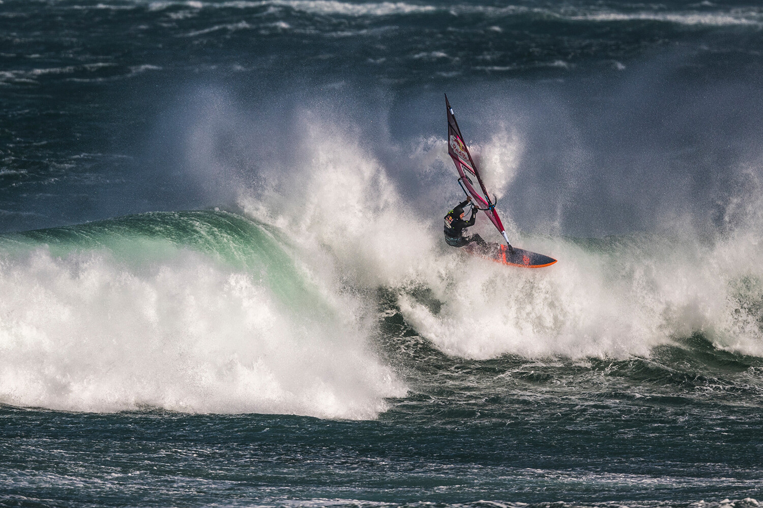 The eight riders headed out in pairs for 20-minute heats in practically balmy 8o C temperatures. Judges watched from above the reef as wind and waves increased in magnitude throughout the day – providing an incredible canvas for breath-stopping wave- rides and eye-popping aerial acrobatics.