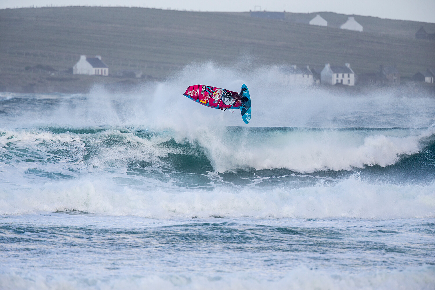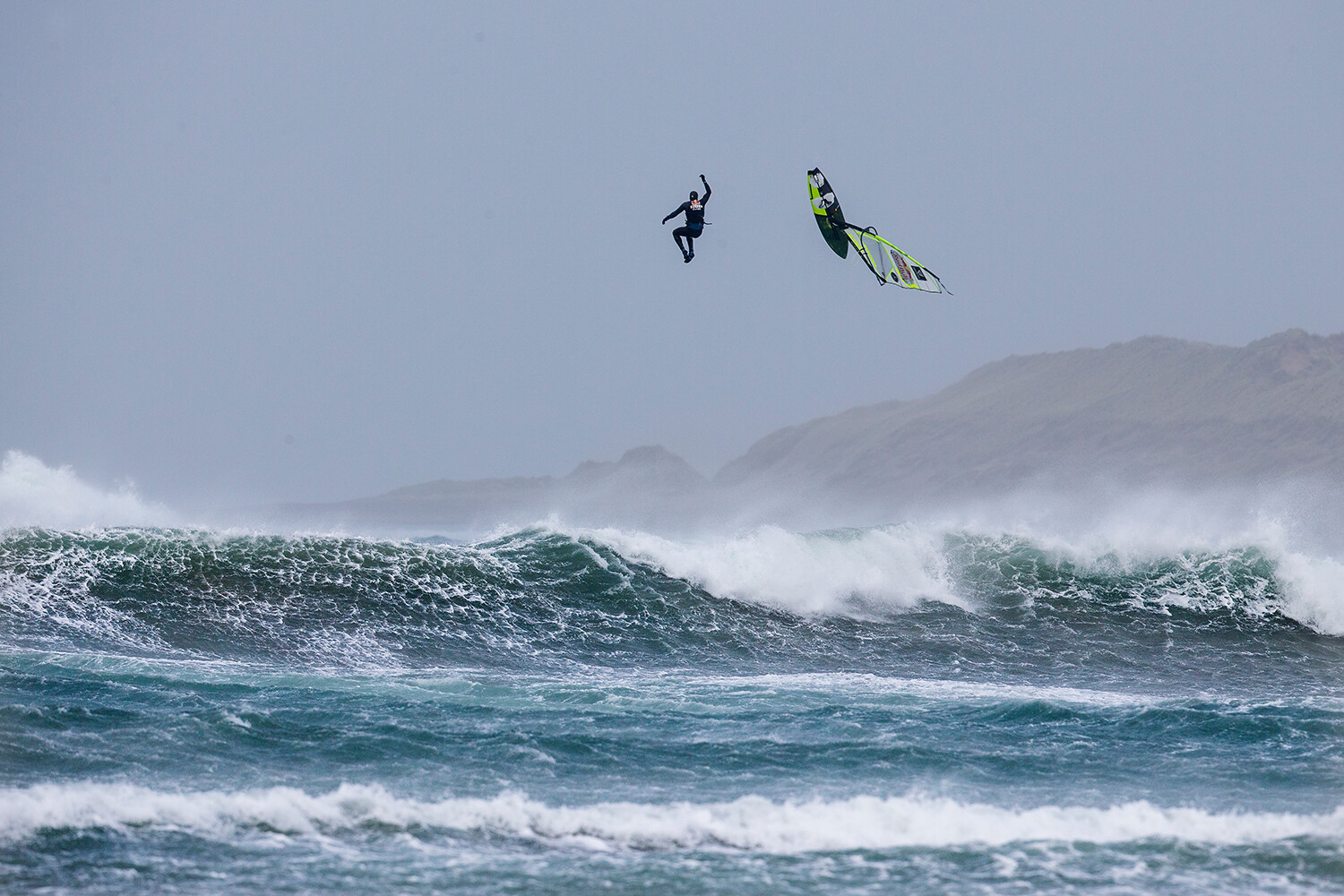 I personally did not do so well, I have been working a lot the last few months for my brand and have not been able to work on my fitness much, that combined with the cold made it tough to sail as I usually do. I still enjoyed every moment and never gave up, it was a battle! I have been in Ireland several times and as always, this country is amazing, amazingly beautiful and the people are amazingly friendly. It was mainly my hands that were freezing, the consequence was that my forearms were cramping. That meant I lost all power to hold on to the sail. It was frustrating when you want to hold on and just can’t because your muscles fail! I actually thought it would be much worse, but for me it was fine sailing with all the winter gear on. The conditions were very extreme and I think I was far away from my comfort zone to go that big. Maybe I should have taken a smaller sail than a 3.7m, maybe it would have not made a difference, who knows? On the second day it was just hell windy, 3.7m was too big for me! Way too big! I could hardly walk with the gear let alone perform with it. I have never ever in my life felt fear ever in the water, until the beginning of the second heat of day one. I wanted to go big and went for a stalled double on 4.0 maxed out. I honestly did not think much on how to pull it off, I just saw a massive ramp and went for it! I went up, pulled the trigger, rotated one time and then another half and crashed into the ocean with a lot of impact as I was high and in a rotating move. Also when it is that windy the surface is hard. It felt like concrete. I remember the impact and then it all went black. I was gone for some seconds and then came back with the biggest fear ever, it was like waking up during your worst nightmare. Horrible feeling. All I wanted to do after that was to cry. I have never felt something like that before in my life, scary. After that I was dizzy the rest of the day, so I spent my last heat taking it “easy” and decided to take a check-up at the local hospital where I spent the night in observation and had a CT scan of my head. This is not an excuse of my performance or final result, but of course this made me lower one or two gears with my commitment to go big on the second day. I just tried to catch the biggest waves and actually had a lot of fun! I would have liked to go big again but with the cold and my fitness I could just not play the game!