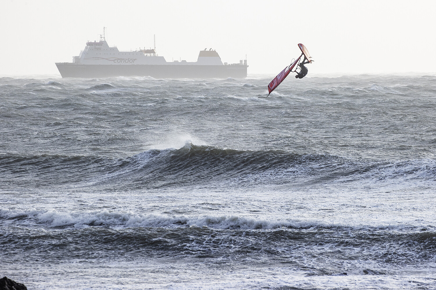 When the tide is coming in, the current can be very strong pushing down the channel. It turns a bit quicker than it does at Niton so the current will start going with the wind a bit earlier. Once that happens it is hard to stay upwind and difficult to get back up to the peak after you ride a wave. But on a dropping tide it is like a conveyer belt that takes you back out up the point. I don’t think I would sail it on an incoming tide and big swell. It would be ok for a downwinder, but it would be tough to stay in the right position. So the chances to sail Bonchurch are few and far between, but on its day, I reckon you could get five or six nice turns and then fly out for a really big jump. Potentially it has all the ingredients to eclipse all the other spots that I sail on the island. I rate it so much that it could be my number one spot in the future. After all these years sailing, I have discovered somewhere new right on my own doorstep. I sailed it back in the day on an easterly and thought that was only when it worked. I’m glad I have finally started looking outside the box and not just sailing Niton after all these years. This winter I spent a bit more time trying to find those diamonds in the rough and making an effort to explore. That is when you can discover something super special that has been right in front of you all along. Now I think of all those good days where I went somewhere else and it was probably firing!