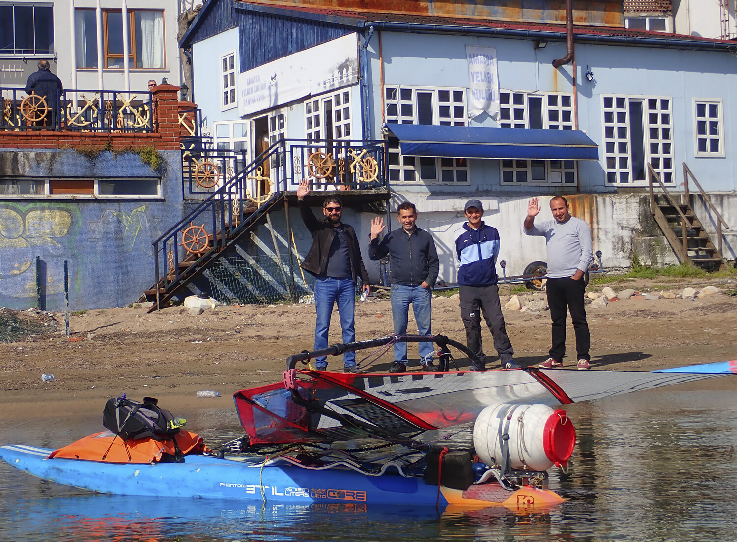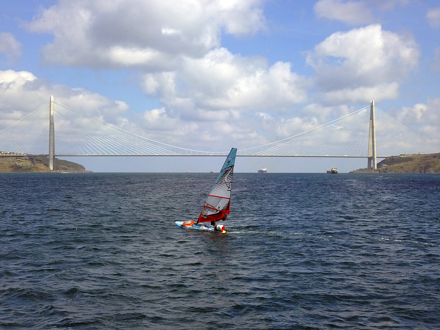 Mid-March and Edhem has everything under control. The day after returning to Istanbul I sail to the Asian side of this Eurasian megacity. Then we search for a day with a southerly wind to help beat the Bosphorus current, a continual stream from the Black Sea that flows at its strongest at this time of year. But with no southerly wind forecast we instead settle on a day when a moderate northerly looks likely. Coastguard and press are notified. The cameras roll and seconds after launching I fall in. I can sense Edhem’s concern, his reputation being on the line here as well as mine, but it goes better after that. The current in places matches that of the renowned tidal races. In old times they towed boats through here. But now the banks are walled and the water races through. Opportunity to escape the current is limited. Thank God there is decent wind. Even so, some parts are a real battle. If tactics are wrong, the wind lulls, or the main channel is sailed, then progress is negative. Each bend is hard fought. We link a few corners and make it under a bridge, a campaign victory! Then another few hundred tacks, and the second bridge is behind us. We reach halfway, where Edhem has arranged for me to stay at a waterside house with a quay. Our coastguard boat escort peels away.