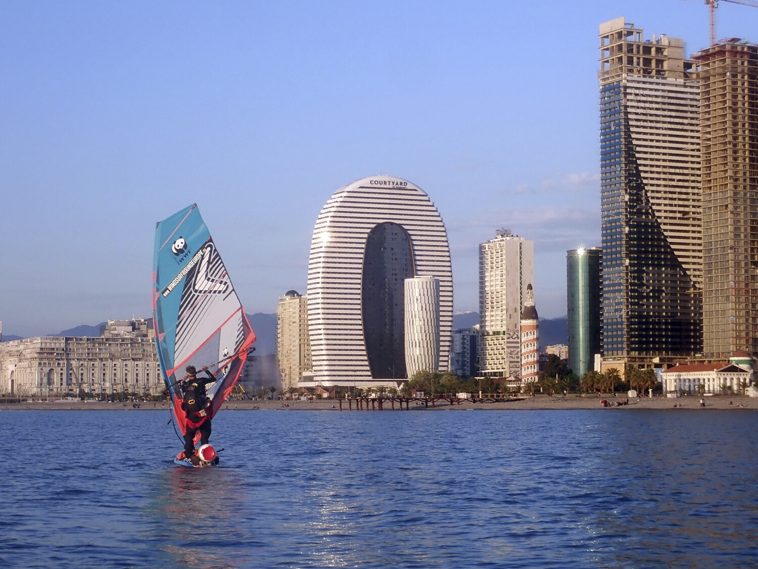 The final leg of the continuous windsurfed part of the journey is a border crossing from Turkey to Batumi in Georgia. It is a suitably effortful day: part-paddled and part-sailed. 10 hours hard slog with cramping muscles at the end. The mountains give way to river delta and flat land and then a modern clean city. Like every day, it is a good one. The next day I catch the ferry to Ukraine and at the time of writing I’m in Odessa sorting paperwork to enter Romania; the final sea legs off the journey await.