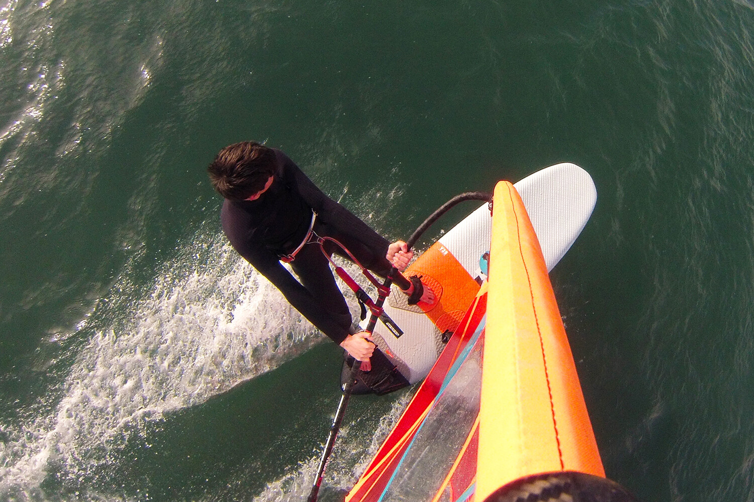 Small and compact underfoot, the directional drive from the large upright MFC fin keeps the Firestorm true and ready to react as power is delivered. It releases smoothly and accelerates actively once its threshold is reached, feeling positive and alert from the off. Travelling over chop, the ride is more direct than most, providing plenty of feedback and engaging the rider. Those that want to take an active role whilst sailing will thrive on this, encouraging them to push further, whereas more timid passive sailors may find it a bit unnerving. It is undoubtedly down to the Firestorm’s bottom shape being flatter than most, maximising quick water release, yet requiring an assertive role from the rider to command it, particularly in turbulent seas. The same can be said of the Firestorm’s gybing credentials; it doesn’t really care for indecision, but commit and it grips superbly, affording you the confidence to push hard and tighten the turn. The more you put in, the more the 120 rewards in return. We also experimented a little with the fin used, feeling that the 42 cm fin supplied with the board was ideal for light to comfortable conditions, but held the board back a little in fully powered 7.0m weather and stronger. We used a quality 38 cm fin with the Firestorm and the response was impressive, thriving on the extra efficiency and speed potential, on all points of sail, but particularly off the wind. Slot a foil in instead and the RRD surprised us with its flying comfort. It certainly prefers to be used with medium to low aspect foils, its narrow width not as suited by high aspect wings with broad wingspans. Yet partner it with the right foil and your potential wind range is amplified markedly.