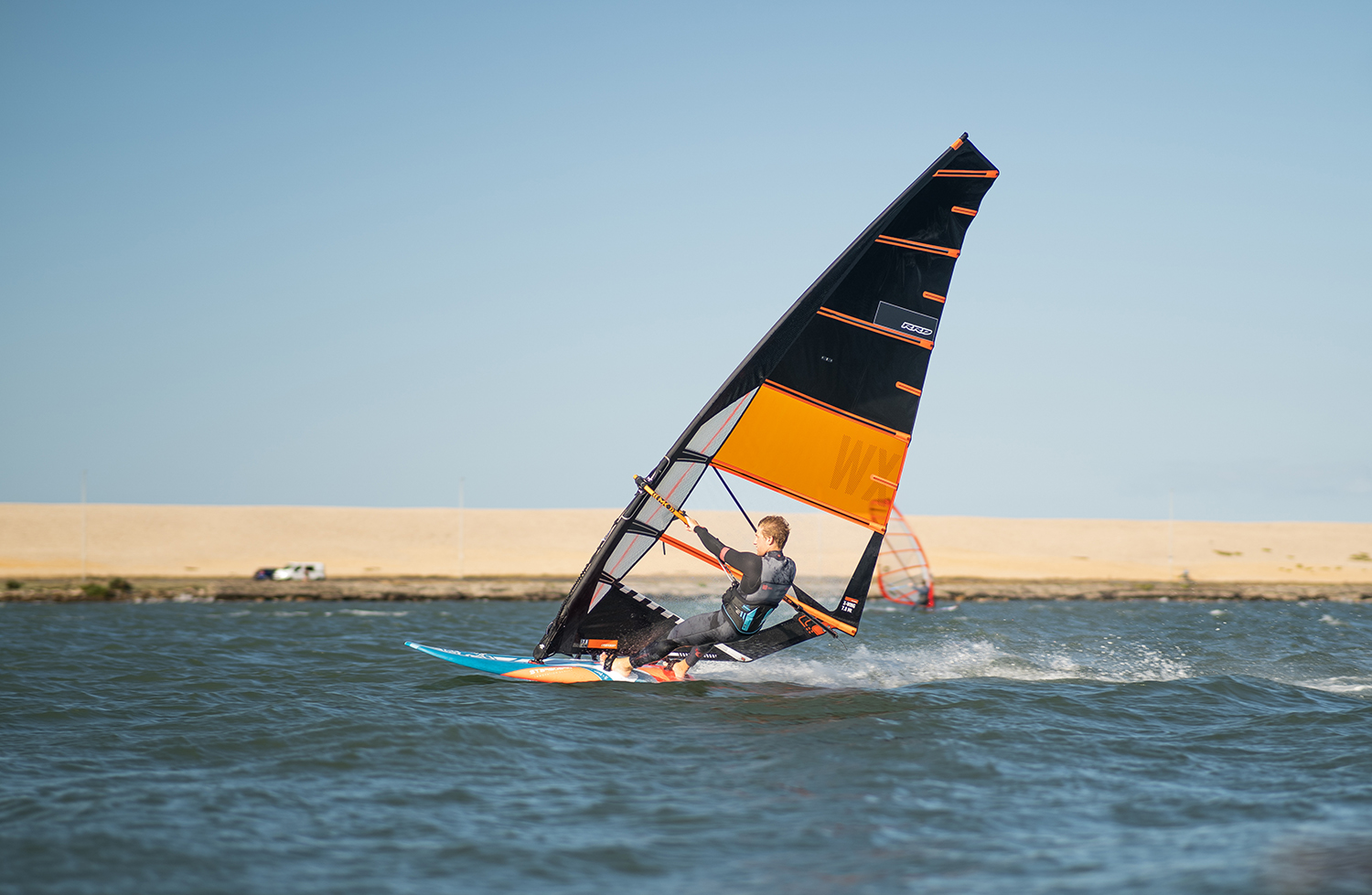 Despite only possessing a moderate luff curve in comparison to others in the test group, the skin tension in the X-Wing is extraordinary, making the sail feel stiff in both rotation and marginal wind response. There is little feedback through the back hand to play with and little flex or movement to make it useful for pumping. Instead, the X-Wing is put to best use when exposed to powered and overpowered conditions, providing the impetus and drive to really appreciate its capabilities. Firstly, make no mistake, this is a full-on race sail! It thrives on being loaded and, by return, bestows the rider with the stability and slippery efficiency to charge the most power-hungry slalom board. Compared to the other full-on race sail of the group, it takes a little more input, tweaking and experimentation across the wind (and dare we say upwind too), yet off the wind it’s a match for any. There’s plenty of potential to play with and tune … something we didn’t really have time to fully explore during our test period, but the performance we managed to extract from the X-Wing was impressive and kept us captivated for more. In transition its rotation remains stiff, requiring rider intervention to get the cams to rotate fully. Though we’re sure that with time spent tinkering with the tension, we could soften the rotation and find the X-Wing’s sweetest settings. If you’re looking for race winning performance and steadfast top end stability, there are few that can rival the RRD.