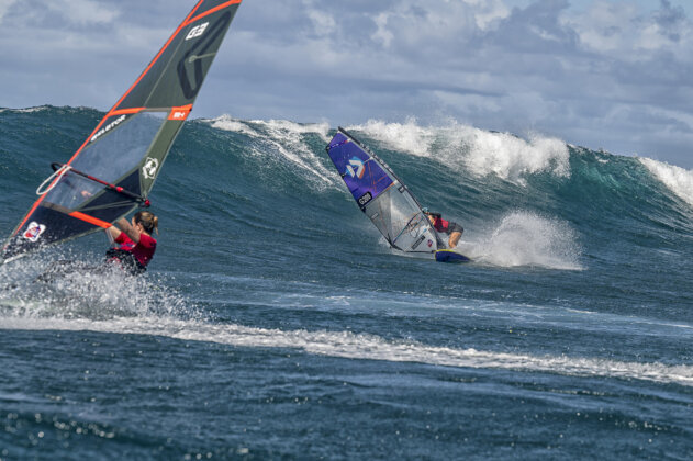 The morning kicked off with frustrating cross onshore northeast winds…the kind that make sailors work for every turn…and it all looked a bit crumbly and slow. But as the heats rolled on and the field narrowed, Ho’okipa flicked the switch. Clean, logo-high sets marched in, the trades swung more easterly and suddenly it was game on.