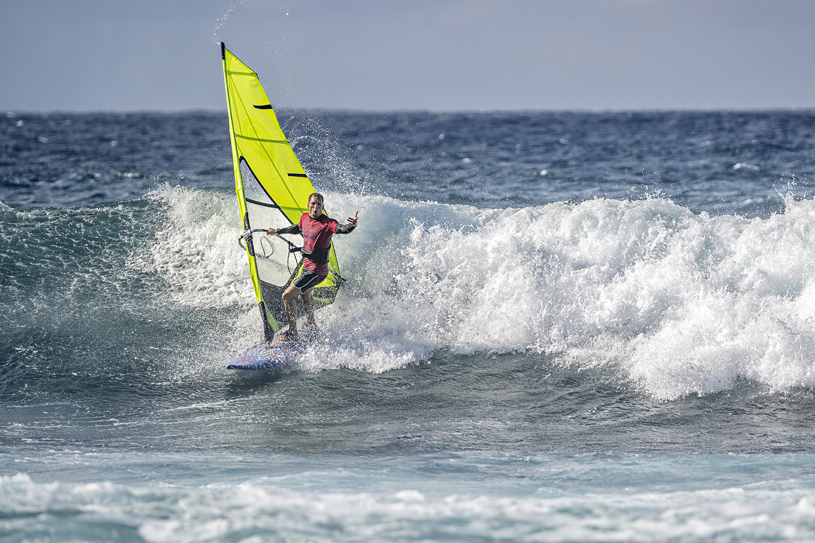 While some other sailors were forcing the issue, Bernd played the long game. Cool calm and collected and seemingly unbothered, he waited patiently for the right waves and when they came, he struck with surgical precision. All while casually listening to Paul Simon on a waterproof speaker slung over his shoulder.