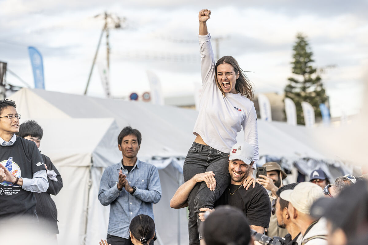 I am competing on the PWA because I love everything about the competitive side of the sport. The butterflies from the minute before the start, a tight gybe or the last 50 metres down to the finish line. Losing is a hard feeling also, but I feel a fire inside me which motivates me to work even harder! I actually learn from losing because it is pushing me to be a better athlete (and that’s my goal). But winning is another dimension… peace, freedom and happiness are the words that better describe these magical moments. Winning with my boyfriend [Matteo Iachino] was something that I still can’t describe… I felt faint when they told Matteo he was the 2023 PWA Slalom World Champion. I feel really grateful every single day to live this hard and stressful life that we are living because what the sport gives back are simply the best moments!
