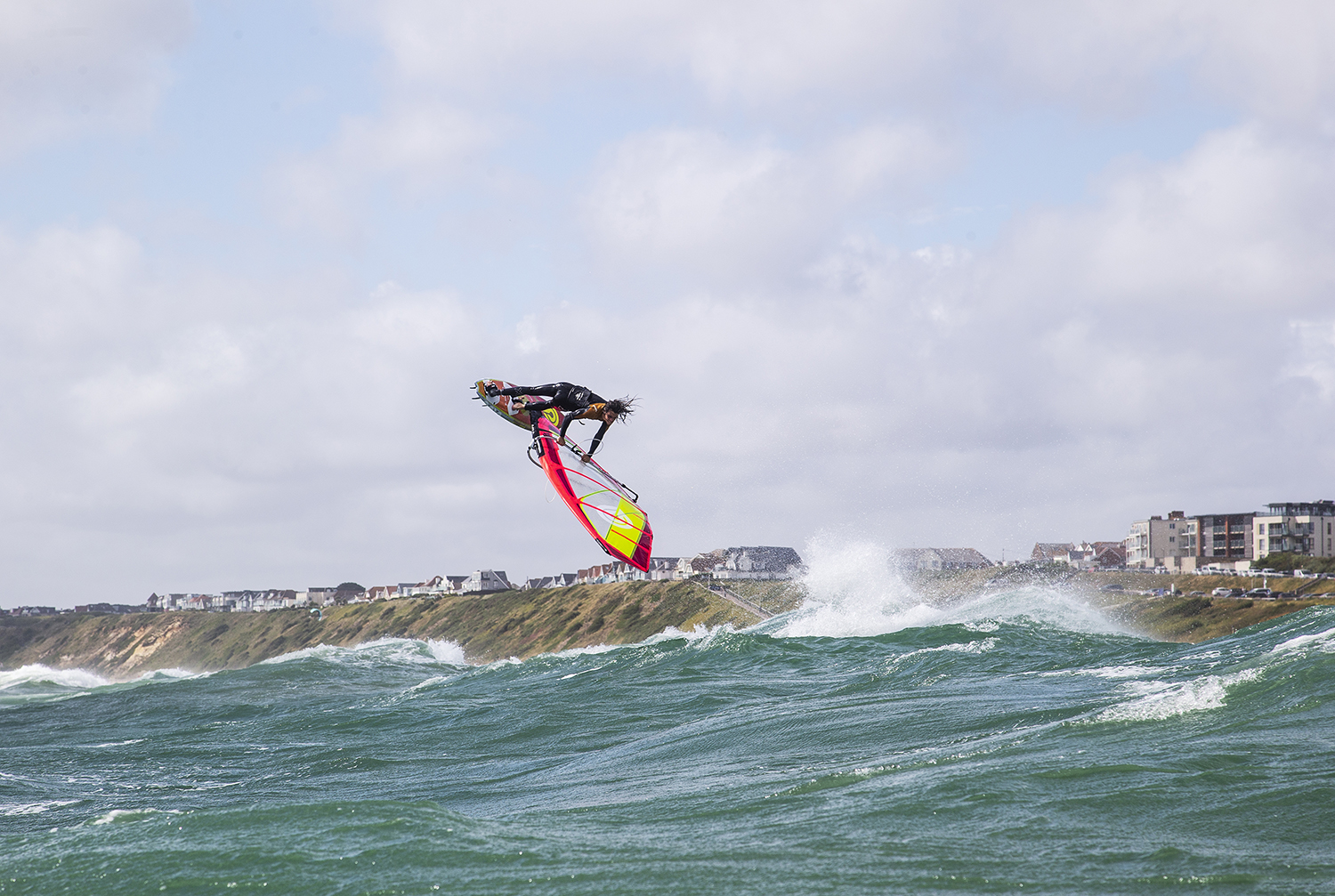 Summer for me has always been about taking the positives out of the bonus wave sailing sessions we get in the UK. Unlike the Canaries, which boast trade winds and wind-blown waves in the summer, the UK is usually entrenched in high pressure and light winds. As a frother, I’m always keen for getting maximum water time and finding wind and waves from even the gloomiest of forecasts, but summer often forces me to recalibrate the froth levels and I look to other watersports for my fix. I go wakeboarding, wake foiling, paddle boarding and if the winds are light, windsurf foiling. Every so often though, the weather patterns turn to what the weather forecasters call “the worse”, and the Atlantic gives us a low-pressure system to enjoy. Usually, these lows have no meat to the bones, they lack the same power of an Autumn storm, and the warm air is usually unstable which makes the wind gusty and the waves usually a bit gutless. But they do give wave sailing conditions, so the foil gear can go back in the shed and copious amounts of built up energy can at last be released into some lips and ramps!