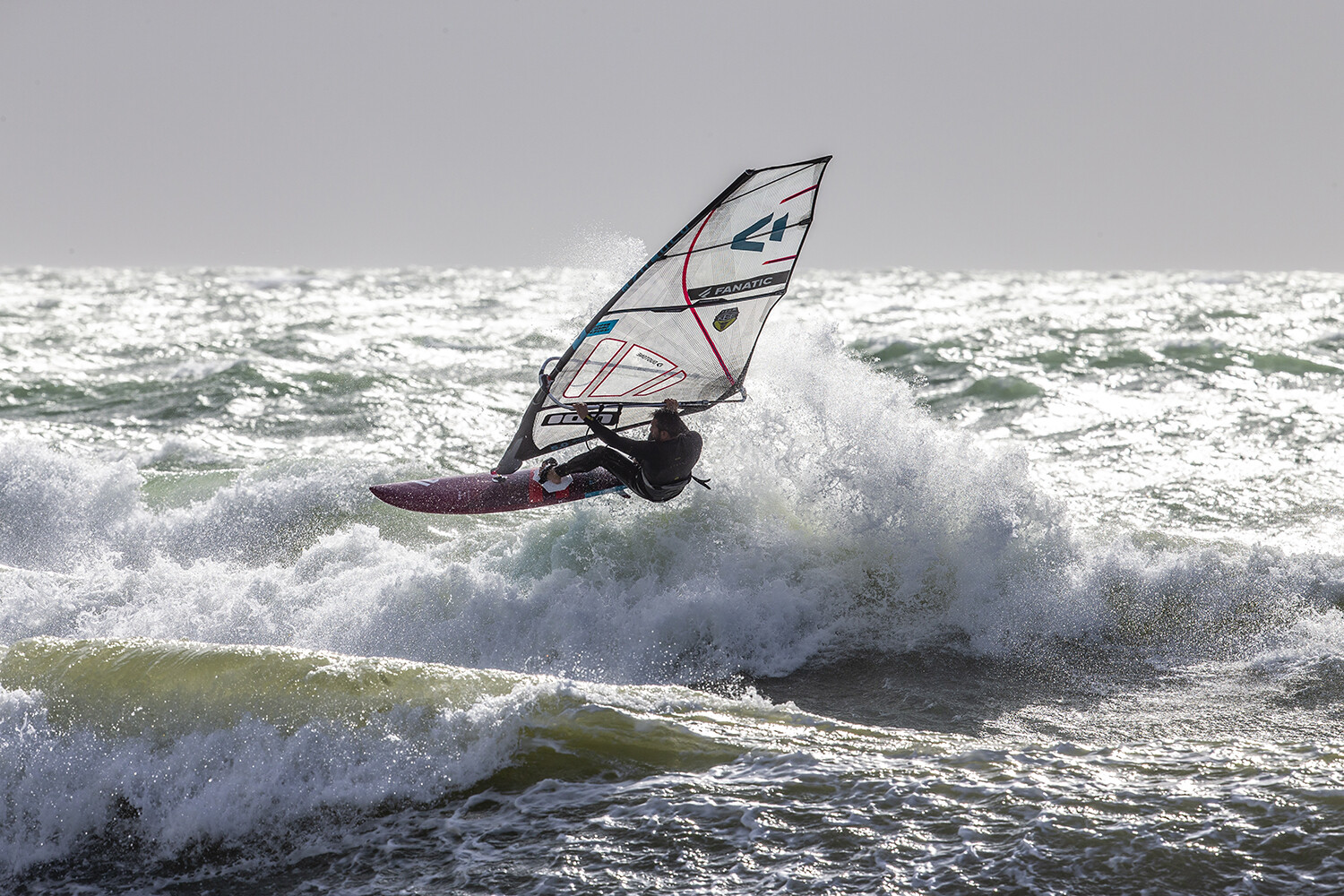 I started out racing when I was 15. My dad switched from a recruitment business to a windsurfing shop, which really changed his life as well as mine. I went along to an event at Worthing and Fanatic distributor Mike Prout, who had just received the new Fanatic Ultra Cat, offered to lend it to me for the weekend. It was an amazing board with cool graphics. I followed the leaders around, especially a guy called Chris Lovelock, and won all the races in my class. At the time there was a Robby Naish trophy for the youth that won the series and we made a deal that if I won it then my dad and Mike would work out a way of getting me to Hawaii to meet Robby Naish. I won everything after that, Robby Naish was my hero, I guess he still is; I was going to Maui come hell or high water! I enjoyed all the racing and the technical side of it, but ultimately I was into the waves after I had my first taste at the South West Funboard Cup down in Cornwall where I saw the likes of Duncan Coombs and Stuart Sawyer sailing.