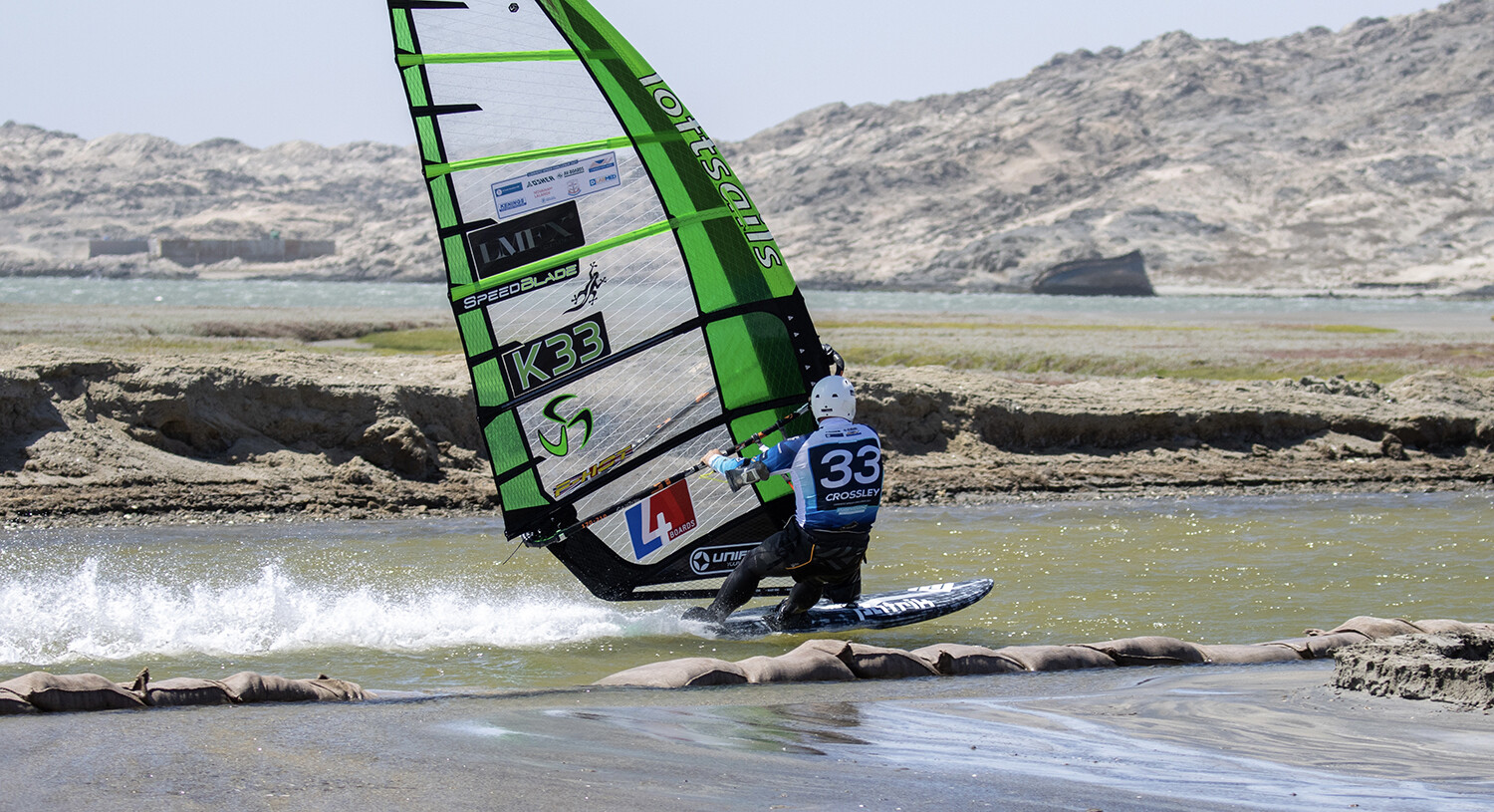 To go fast, probably the single most important thing is to be able to sail your board off the fin. By this I mean your back foot is pressuring the fin and the board is sailing off the tail. The board would ideally be a medium-sized slalom board, 105-125 litres with a flat rocker line from the front foot back to the tail. The fin would ideally be an upright design and not a raked fin. If the area under the front foot is spending most of the time in the water, the board isn’t flying. It’s really important to be able to find this balance point. Mast base position can be moved back step by step to also aid the board to fly. If the fin still isn’t producing enough lift, a lager fin size maybe necessary. It is not the case that a smaller fin will cause less drag and make you faster. Overall the lift from the fin reduces the wetted surface drag from the board significantly more than the drag from the fin itself. To be able to achieve this, it’s not necessary to have a cam sail, as modern rotational sails are perfectly capable of over 30 knots.