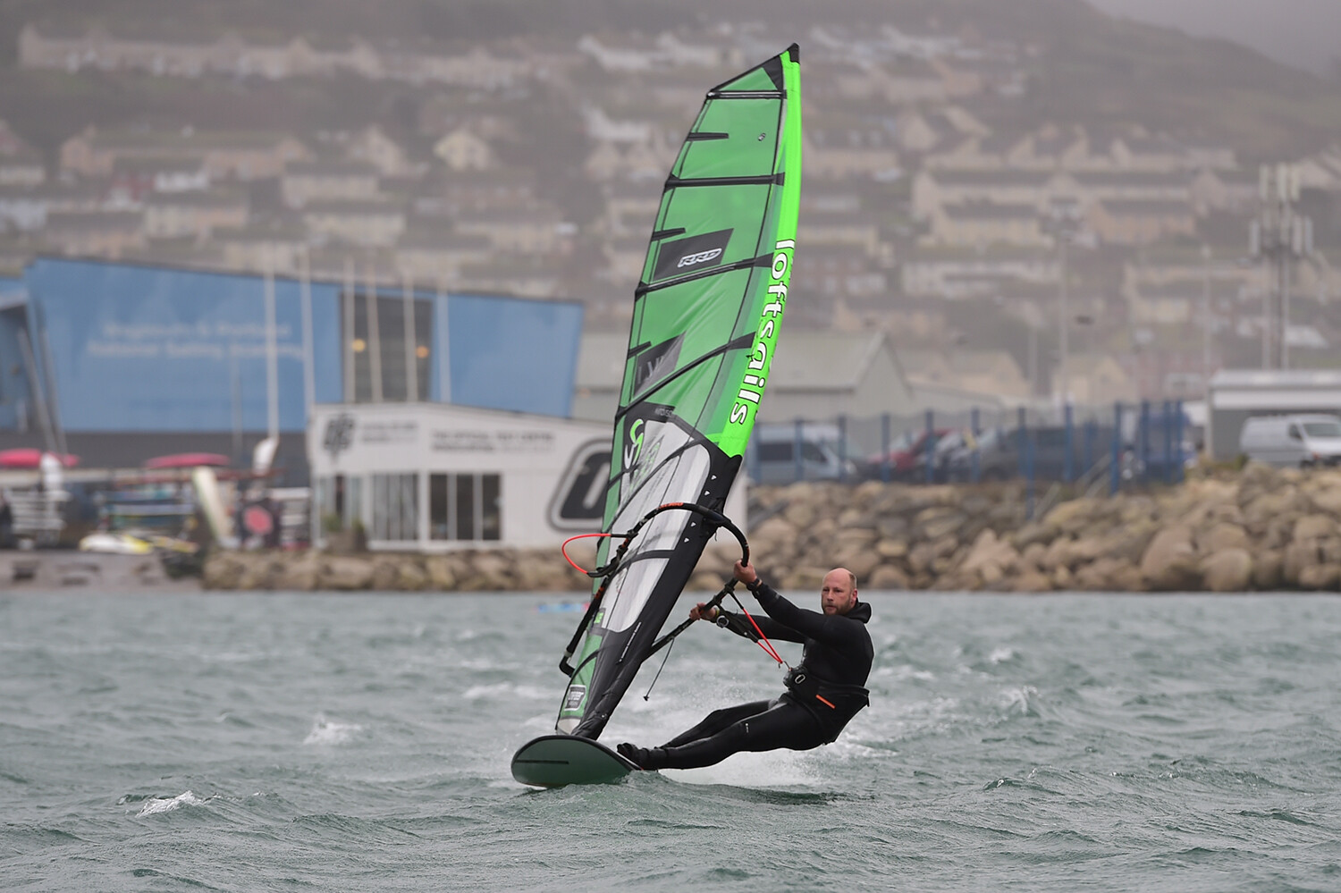 It’s good to be on a quality carbon fin also for this. It would be preferable to use a quality slalom fin in a slalom board around 28-32 cm, but in a really flat water location where a speed board can be used it is better to use an asymmetric fin. This produces a lot more lift for its size, allowing you to use 1-2 cm smaller. As an example for a 45 cm speed board, a 21 cm asymmetric fin would be perfect. Note that they aren’t so good when you turn to the return tack and try to sail back upwind! Nearly all UK spots require starboard tack asymmetric fins.