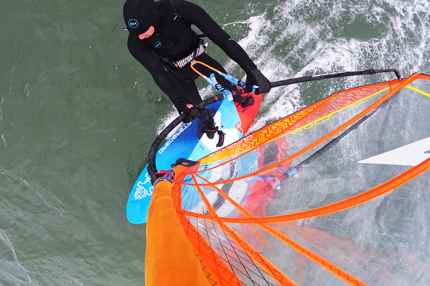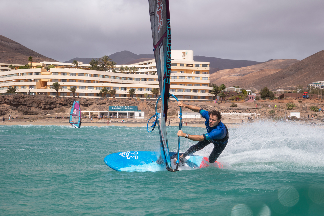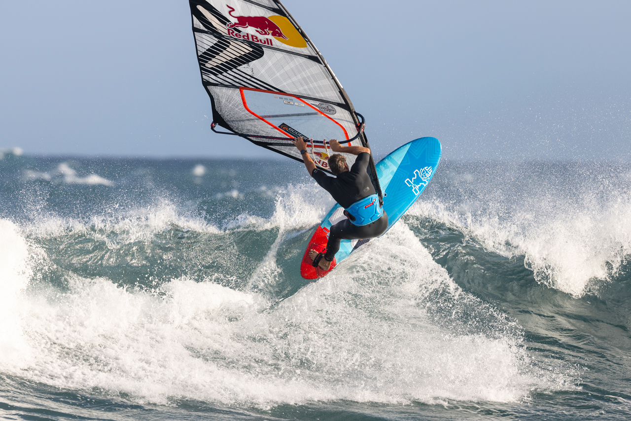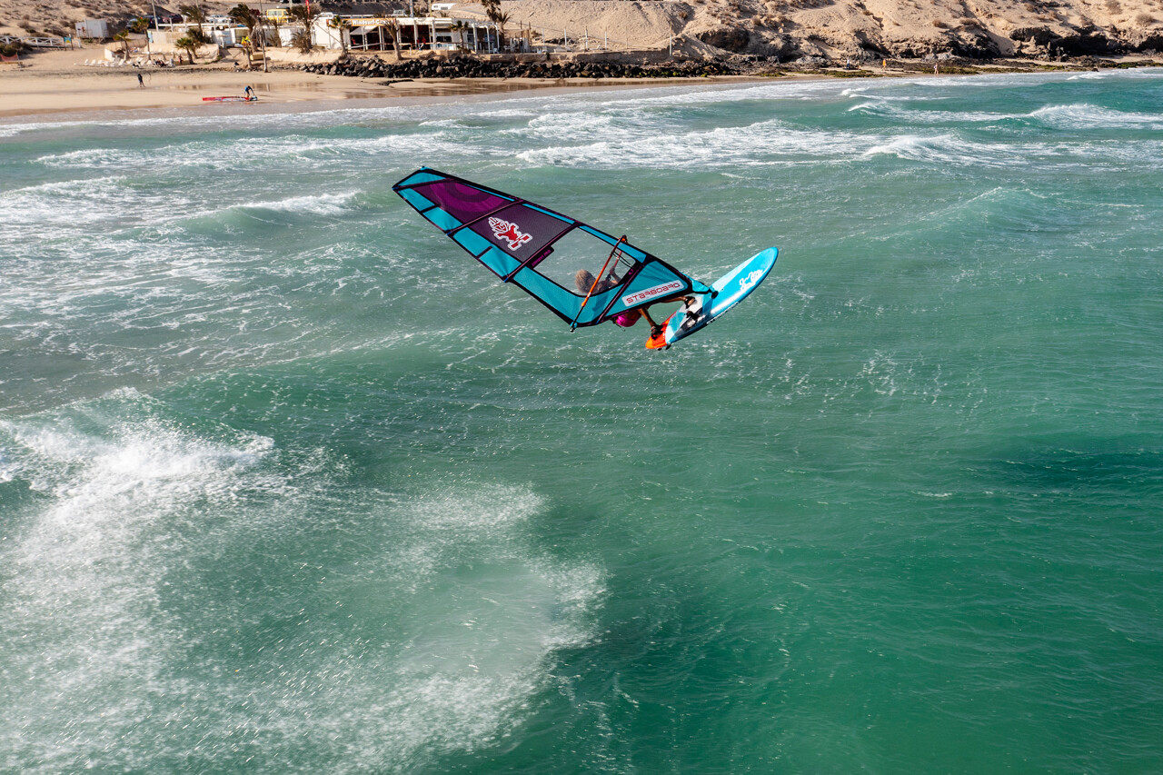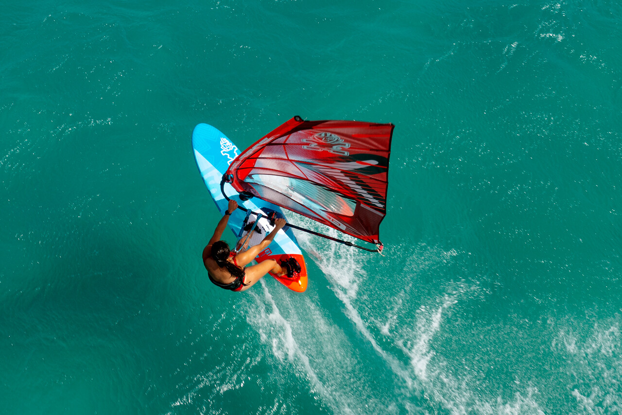 On the landing, the rounded tail ensures there is not too much volume under the back foot making for a smooth touchdown. Through manoeuvres and turns, the board performs well. Once again, the Kode’s compact design allows the rider to direct the board with precision, and despite being a 105, the board’s turning arc is sharp. Committing to a bottom turn or a gybe is well received by the Kode as the rail bites, cutting through choppy water well and encouraging the rider to commit further. On the exit of both tacks and gybes, the board asks the rider once again to position forwards on the deck, making the most of its volume.