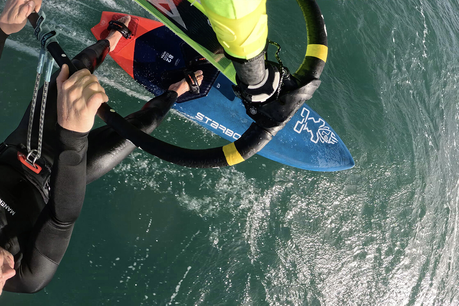 As the lightest board on the test, the Ultra feels weightless when connected to the rig and walking down to the water’s edge. Floating out through the white water on the inside, the Ultra is comfortable off the plane due to the clever volume distribution, which assists you. Having found a flat spot and gained some cleaner wind, the Ultra works onto the plane, while the volume distribution works well to offset the radical rocker line of the board. The recessed deck pad adds control and helps stabilise the board. Most noticeably, it was much more comfortable and stable when tacking, with the flat area working for you during the midpoint. Dropping into a wave, the board feels poised and ready for anything the wave presents. Its super-domed deck allows you to play the rail with minimal effort through the back and front foot, while it has the ability to adapt to the fast-changing scenarios on a wave, enabling you to perform a variety of turns at a moment’s notice and put that rocker line to serious use. In the turns, the tail follows the nose, sharpening up the bottom turn, while if needed the Ultra allows you to really pull the tail under you to achieve a much tighter turning radius, hit the lip with a steeper angle and send heaps of spray, putting a a show for those stood on the beach.