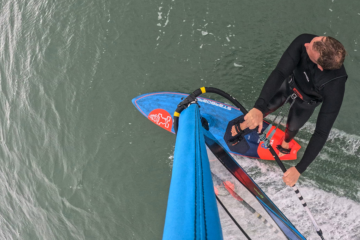 The Ultra requires the rider to have a balanced approach to foot placement to keep it stable and drive it in the desired direction. The Ultra isn’t a natural platform when floating off the plane, but once given enough power, it jumps onto the plane easily. In the straps, the Ultra feels stable and locked in, but demands a little more from the front foot. Its thruster setup provides decent drive and direction on all points of sail, and its pulled-in nose and substantial rocker naturally help avoid any unruly chop. Through gybes, the Ultra remains locked in and predictable, while during tacks, you need to stay close to the mastfoot to take full advantage of the volume distribution. The flat area around the mastfoot is a subtle feature, but you’ll really notice it in the tack as it adds comfort and stability during time-critical manoeuvres. Overall, the Ultra is a relatively fast board, carrying speed on the crest of a wave as you look down-the-line or a face to choose the perfect moment to drop. The initial drop into the first bottom turn and up to the top of a crumbling crest is where the Ultra truly comes to life for me. It thrives on power throughout the ride, allowing you to bank the board over and make use of its domed deck, while digging those chunky rails into the face as you enter a powered, but controlled bottom turn. At a moment’s notice you can tighten the turn with more back foot pressure to send the Ultra more vertically towards the crumbling, or pitching lip, which is perfect for a smack or snap off the top. The Ultra responds well to riding with power and proactiveness, especially in the lower half of your body, asking the rider to shift weight and power forward after hitting the top to bring you smoothly back down into the next section. The nose always avoids burying and sits comfortably in the curve of a wave. If you sail with power and intention, you’ll reap the many rewards the Ultra has to offer.