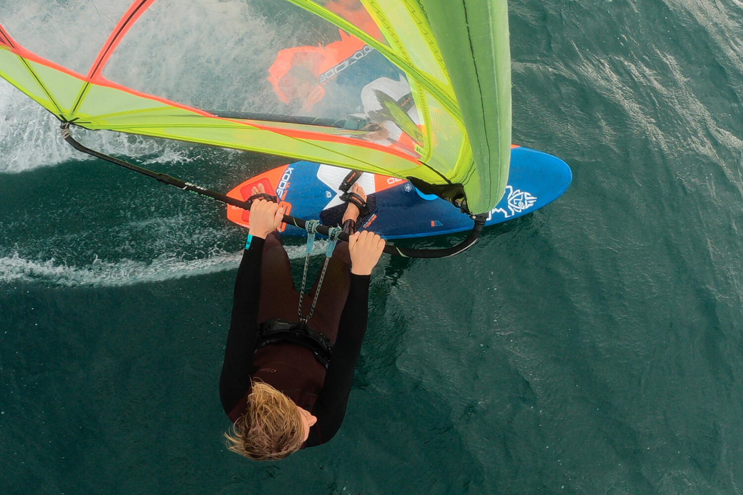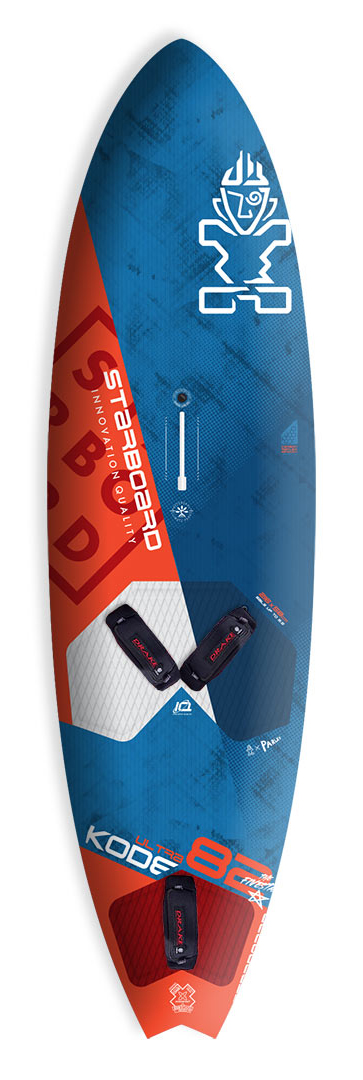 With its extra width, the UltraKode feels planted and balanced underfoot at rest, easily capable of carrying the 5.5m sail quoted, perhaps more. Tracking well off the plane, as power is delivered it releases with little encouragement and accelerates willingly to an impressive top speed. The fittings are supportive and comfortable, cushioning the ride as it releases and skims over the surface, the ride crisp and alert when fully powered. And with the fins located relatively far back in the tail, the UltraKode is a master at pointing high and making ground upwind. It was one of the best in the group for really owning the wave arena, blasting out the back to be first in position for the next wave ride. On the wave the UltraKode was easy to get on with, biting cleanly and maintaining its speed well, back up the face. The rearward fins again play their part here and make the arc of the turn a little prescribed; it’s an engaging and rewarding carve but proved harder to adjust once the rail is set. That said, the central fin box is plenty long enough for a little tinkering, and moving the fin forward certainly helped to loosen the ride up. Indeed, this Fivestar version can also be setup as a quad, providing an extra variable of versatility to really get the most from the board and conditions. Due to limited time and the magazine deadline, we didn’t get a chance to fully explore its quad potential, but initial findings were impressive, loosening the board up through the bottom turn.