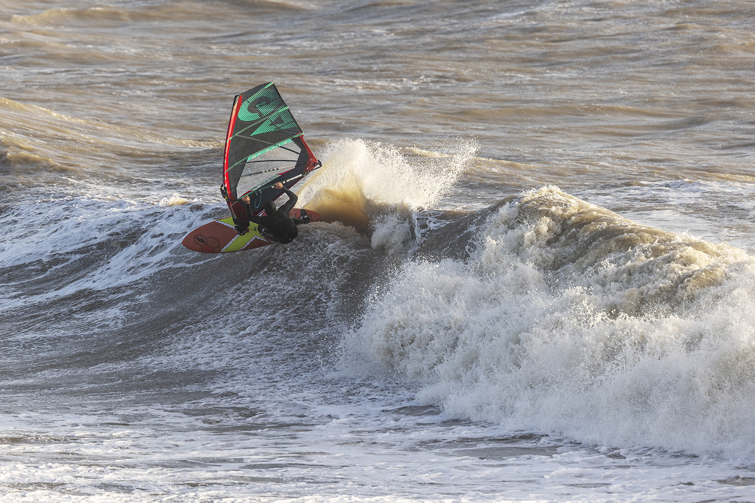The forecast was decent, onshore overnight, which would build up the swell and then swinging round to the west. I was excited to sail with Timo and meet up with the Motley Crew for our annual Christmas do. It has been a while since we have all spent some time together. We were both shrugging off injuries and all our vehicles were worse for wear, but we still gave it our all and sailed for hours. Niton was quite sectiony and the waves were bending away and we took turns swimming for our gear. I was on the 2024 Da Curve, the new signature model from Thomas [Traversa]. I really like that board, it is a classic outline with a single concave, which felt really nice when you put the board on rail. The new Manic’s were also feeling super nice. I am very happy to still be sailing for GA Sails after twenty-five years or so.