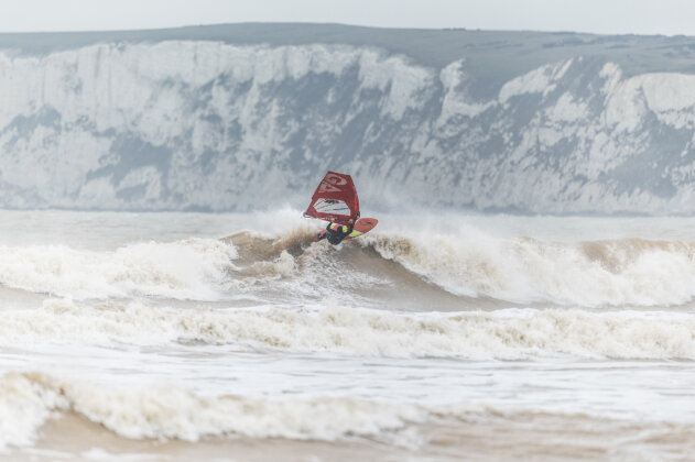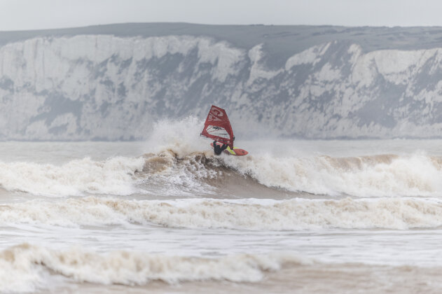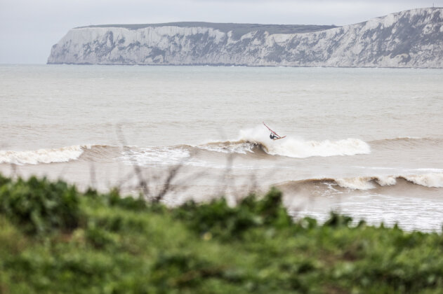 JC: “Unless you’re permanently glued to weather maps and forecast models, some wave-sailing opportunities can easily slip through the net. I’ll admit I hadn’t really clocked the incoming southwest swell paired with south to southeast winds…until a message pinged on my WhatsApp from Ross Williams, confidently suggesting that Compton Beach on the west side of the Isle of Wight could be firing on Thursday and Friday (29th and 30th January).