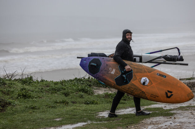 A closer look at the charts suggested he might actually be onto something, although the setup was far from perfect: lightish winds, a long-period swell and the kind of gloomy, wet weather that can kill the wind and make conditions unpredictable. Not exactly the turquoise imagery I’d recently been drooling over of Thomas Traversa and friends slaying the perfect points breaks In Cape Verde. Still, colour is a matter of perception and visual appeal is subjective…at least that’s what I kept telling myself.