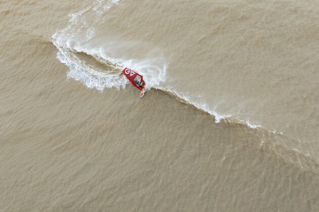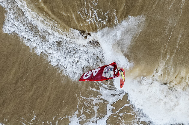 Getting out meant using the rip on the left of the bay, scraping over mast-high walls, staying patient, staying confident and above all not falling in. I took a bigger board to help me get out. I also chose to try and sail out where the rip was. I could see that it was mast high but there was almost a channel because of the rip. There were a couple of hairy moments but I survived. You need a board that floats you and when you go over the top of a wall of white water, you need to use all your strength to not get blow off the top of the wave. At all costs don’t fall in. If any wave had hit me I would probably destroyed all my gear. Once out the back, I waited for the best sets so that energy that I burned getting out was worth it!