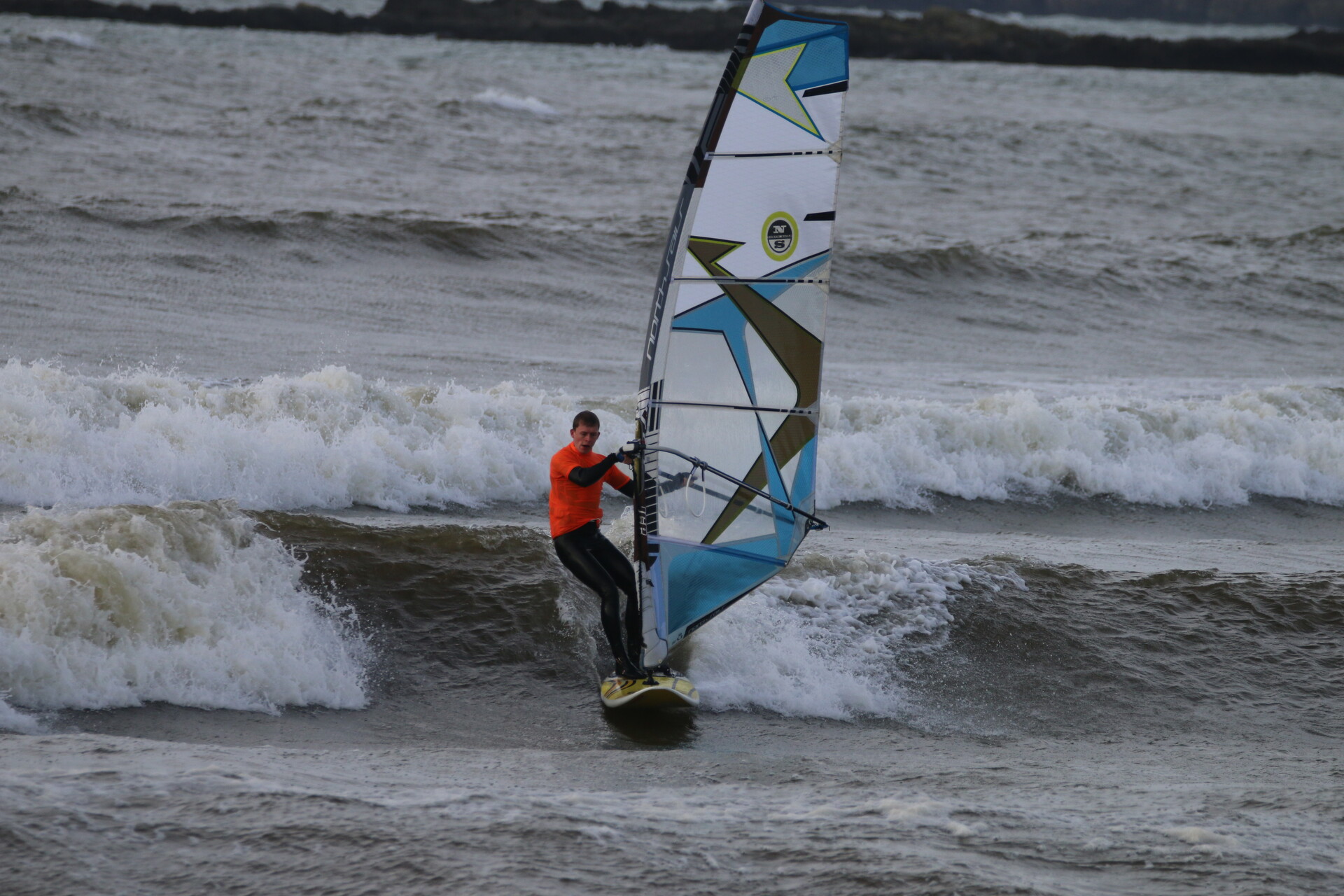 Saturday morning dawned to reveal a stiff breeze tickling the tops of the leftover storm swell rolling into the bay at Rhosneigr. With two wave rides to count, the sailors hit the water to do battle with the Rhoss Ness Monster. Conditions were tricky, but four sailors stood out to claim their places in the final. George Norcott of Plymouth, Ben Bulson of Bristol, Sara Kellett of UWE and Shaun Ashmore of Manchester. With the tide pushing in and the wind building, the final produced the best conditions of the whole contest. With gaps between sets, wave selection was crucial to scoring well. It was Sara Kellett who took the early lead, picking off a solid set wave. Milking it for all the speed she could, laying down some really nice powerful turns. Despite George, Ben and Shaun giving it their best, none could match the former ladies national champion and when she backed up her strong first wave with a second, she secured her first place. The battle for second was a close affair with Ben Bulson and George Norcott tied on points. Thanks to his higher single wave score it was George who came out on top to take second place. Shaun Ashmore completed the top four. Commiserations to Charlie Williams, who was tragically struck down by an unknown illness in his heat. Fortunately he went on to make a full recovery, after drinking some water and having a little lie down.