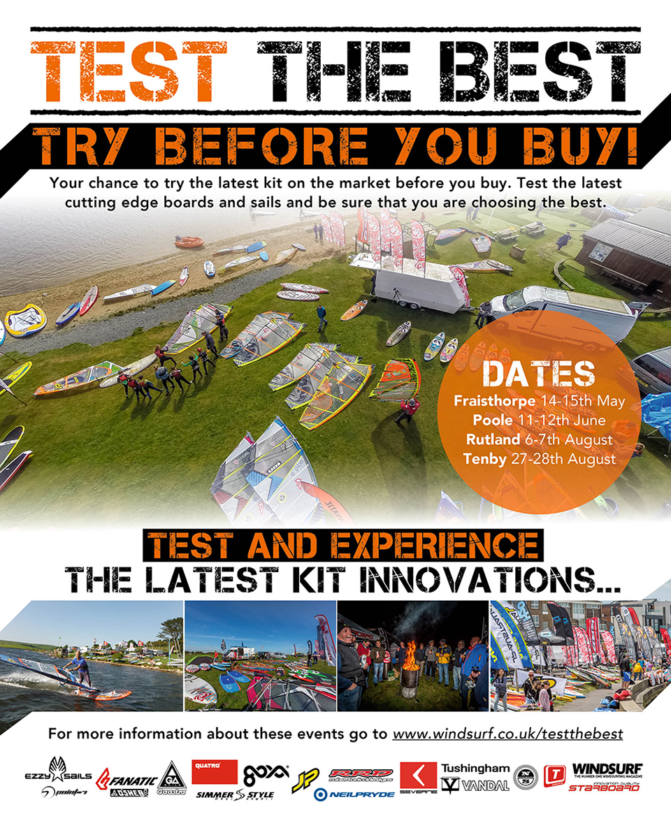 Your chance to try the latest windsurfing kit on the market before you buy. Test the latest cutting edge boards and sails at four UK locations this spring / summer and be sure that you are choosing the best. Four great locations, each perfect for a weekend away with camping and B&B’s nearby.