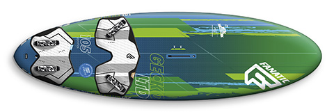 Taking a closer look at the Gecko 105 before we go on the water, there are some initial design qualities that hint towards the performance likely to be experienced. Fanatic have opted for a pintail design to reduce drag and improve speed rather than cutouts adopted by several others. There is also a significant amount of vee in its bottom shape, starting in the shoulders and becoming progressively more pronounced, still prominent in the tail around the fin. Sure enough, on the water, the Gecko displayed a simply stunning amount of control. Whilst it is eager to get on the plane when power is delivered, it accelerates progressively instead of exploding from the blocks. Once there, it has a smooth and tempered character that belies its speed and straight-line potential, particularly when the sea state is challenging. It seems to iron out the most confused chop effortlessly and provide security when planting landings, even from unintentional airs…! This level of control often comes at the expense of any spark or excitement for the more experienced rider, but not so for the Gecko. Yes, there are a multitude of strap options for every rider ability level, and its character can seem calm and subdued. But load it with a powerful sail and you can charge around the most evil water surfaces, loading the fin confidently, the board feeling far from 69cm wide underfoot. In gybes, the wide flat deck provides both stability and response, whilst the rails bite superbly well. If you want to tighten the radius of the turn there is no doubt that the board will oblige. In more marginal winds, it doesn’t seem to glide through lulls as easily as some others (perhaps due to the increased wetted area of the vee), but its performance is by no means a let down, and does not spoil what is otherwise a fantastically balanced and well-mannered contender.