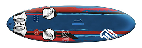 “The Fanatic Ray is the user-friendly speed demon suited to every windsurfer. Early planing is enhanced by a wider outline around the front footstraps, which also effortlessly supports the board on the plane through any lull. Acceleration, top speed and control is boosted by a revised cut out design and board balance is supported by advanced volume flow. The ergo rail design increases response when gybing giving a solid and speedy performance through your turns. A fantastically fast yet friendly design, the Ray will give you the ride of your life!”