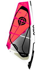 Rigged on a 400cm mast, the Guru is easy to set thanks to the visual indicator in the upper panel, albeit the dot is right next to the upper CSC (Carbon Stretch Control) tendon so it took a little playing to confirm the looseness in the leech goes right to the marker. As with the Banzai, the sail’s fine-tuning can then be achieved exclusively using the two clew eyelets – the higher for more marginal winds, and the lower to increase control as the wind strengthens. It is an excellent system – both effective and practical, made all the more so by the clew eyelets being directly connected to their individual CSC strands. Light and easy in the hands at rest, the Guru has a soft and forgiving power delivery thanks to the Dacron luff panel and the extra elasticity afforded by the vinyl window. The centre of effort is relatively high and forward, yet locked securely in place, never shifting or pulling the rider to their toes. It has quite a conventional familiar feel about it, doing exactly what you’d expect of a modern sail, whilst providing the power and time for the rider to concentrate on their own performance. As the environment becomes more severe, the Guru instils the confidence to keep charging, using the lower clew eyelet to exact a more compact stance whilst allowing the leech to twist more freely. The built in softness acts effectively as a dampener, making the ride easy and sparing, particularly over hard chop. In transition, the Guru is both dependable and playful to use, powering smoothly into the manoeuvre, whilst the elasticity in the foil enables it to go light and be repositioned easily. The response isn’t instantaneous (look to the Banzai for a crisper feel) yet the Guru does everything that is asked of it, complimented with a power delivery that makes it easy and accessible.