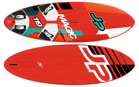 As with the three other larger sizes in the Magic Ride line-up, the 119 is a completely new design for 2016, replacing the 118 of old. Available in three constructions, from Pro to ES (Epoxy Sandwich), it is tested here in Full Wood Sandwich (FWS) – the middle option price wise. Supplied with a 40cm G10 fin, the board has a noticeably thin profile and reverse teardrop outline, the max width placed north of its mid-point. This means that although the tail of the board is no narrower than others in the group, it seems visibly narrower, with lots of curvature in the board’s outline. With a flat deck throughout, there are all the usual strap options, from training to inboard and outboard, yet JP have wisely reduced the number of holes to two per plug to reduce weight and any confusion.
