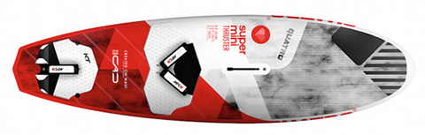 The Super Mini is new for 2017, available solely in Quatro’s Pro construction across its four sizes, from 78 to 103L. With its parallel outline, diamond tail and chunky rails (progressing from super sharp in the tail to rounded and soft in the nose), the Super Mini is an attractive looking board, opting for a more conventional nose shape. It comes supplied with the brand’s excellent Varidens deckpads with their raised tail pad, MFC’s straps and quality moulded carbon fins.