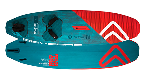 The Dyno is Severne’s new Freewave board range, described as being based on the brand’s Nano waveboard series. And we can well believe it looking at the design of this 95L version more closely, having several novel features just as the Nano 83 has (tested in last month’s issue). Adopting a short yet relatively narrow outline akin to the compact waveboard concept, the Dyno’s rails are noticeably parallel, keeping width in the shoulders and stepped/wingered tail. The rails themselves are particularly sharp and defined in the tail, before becoming very tucked and rounded towards the bevels in the nose. That brings us onto the bottom shape of the Dyno, which is unlike anything else in the group. There’s a raised spine running through the centre of the board that helps to exaggerate the vee throughout most of its length. Couple this with deep double concaves and you really get a sense that designer James Hooper is a fan of interesting bottom shapes to define the riding sensation of his boards. The Dyno’s volume, footstraps and fins are then pushed to the rear of the board, the deck super-domed in the tail so that the rail remains thin. Produced in China using the brand’s exclusive compression moulding facility, the Dyno weighs in as the lightest board here and comes supplied with Severne’s own Velcro straps and a Hex4 Allen key. The idea is that this one tool can adjust and tension every component on Severne’s products, from the fins and straps on a board, to the batten on a sail (plus open a beer to celebrate!). The G10 fins provided use a Slotbox+ (a slot box with a locating pin in the front) in the side fins and a Powerbox central fin, so that the board can be used with a larger single fin for straight-line blasting work.