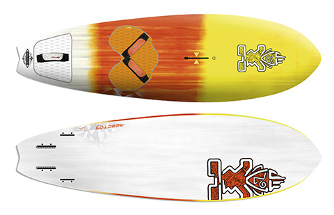 Step onto the Reactor and it is noticeably the smallest feeling in this group, requiring more power and encouragement to release from the water. Once going it didn’t feel as lively or assured underfoot as we’d hoped for, dropping off the plane quickly in a lull. Some discussion directly with the designers later and it was recommended that we put the fins right at the back of the boxes. We also measured the board’s weight and discovered it came in at over 300g heavier than the average … and significantly more than the other boards on test here. Interestingly, the back fins supplied are 145, whilst the website recommends 150’s. So would the fin movement change the board’s manner? We are pleased to say it did. With such a short length (not to mention its extreme tail design with pronounced vee and masses of tail kick) the board needs the drive from the fins, and once delivered it transformed the board. Planing much earlier and feeling more alert, it responds instantly to any change in foot pressure. It really likes to be powered and wasn’t really suited for any float and ride (the common misconception with its predecessor), but coped well with any wave environment we threw at it, from cross on mush, to smooth logo-high cross-off rollers. On the wave it really is a supremely addictive board to use, gripping confidently and capable of turning so tightly that it could suck eyeballs out of sockets! It allows you to make sections you thought you’d outrun or mistimed, whilst the wide nose rebounds off the lip for redirection down the face, and stays on the surface to enable you to finish the turn off.