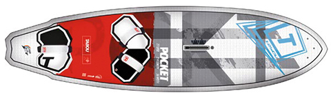 “We tested every kind of nose and tail shape, and the new Pocket features our favourite combination: a double-diamond tail and a normal nose, for a mix of manoeuvrability and comfort. The short length and winger outline make turning radically easy, which allowed us to use a very straight rocker so that the Pocket accelerates even when the wind is light or the current is strong.”