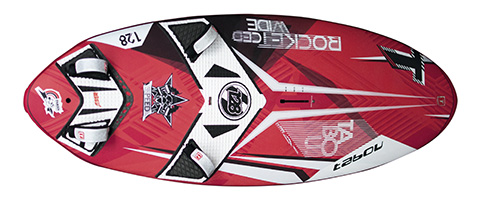 At 73cm wide, the Rocket Wide is significantly wider than all the others on test here, bar the Simmer. Its plan shape is very rounded until its tail, which is pinched in and home to some deep cutouts. Not surprisingly therefore, the 108 is super easy and stable at rest, capable of carrying the 8.0m suggested by Tabou (albeit requiring a larger fin than supplied; a 38cm fin seemed to work fine). From there on, the board’s performance took us down a path of intrigue and experiment, with several real surprises in store. It planes very early and accelerates smoothly and subtly, providing time and stability for the intermediate to work their feet outboard and into the straps. It is also deceptively fast, the pronounced vee and double concaves cutting effortlessly through chop and enabling the board to just sit calmly by, encouraging you to plough more power in to see where its abilities will lead to. Even severely confused conditions (where we envisaged the 108’s width would count against it and make it rock from rail to rail), didn’t unnerve it, instead seeming to hover flat over the worst of the chop and not get involved. We suspect a large reason for this is that the vee diminishes by the front straps, leaving pronounced double that acts like a set of stabilisers as the board charges forwards. Either way, the Rocket Wide’s fantastic retained composure was a welcome surprise. The other pleasant surprise was its cornering ability. Stamp on the rail and drive aggressively through the turn or cut a wider more measured arc, the 108’s ability to keep its speed and glide through the exit of the gybe was as if it had an auto pilot installed. As such, the Rocket Wide was a real pleasure to use by advanced riders and would undoubtedly find favour with progressing riders as well. So the question now is whether the longstanding Rocket range has been superseded?