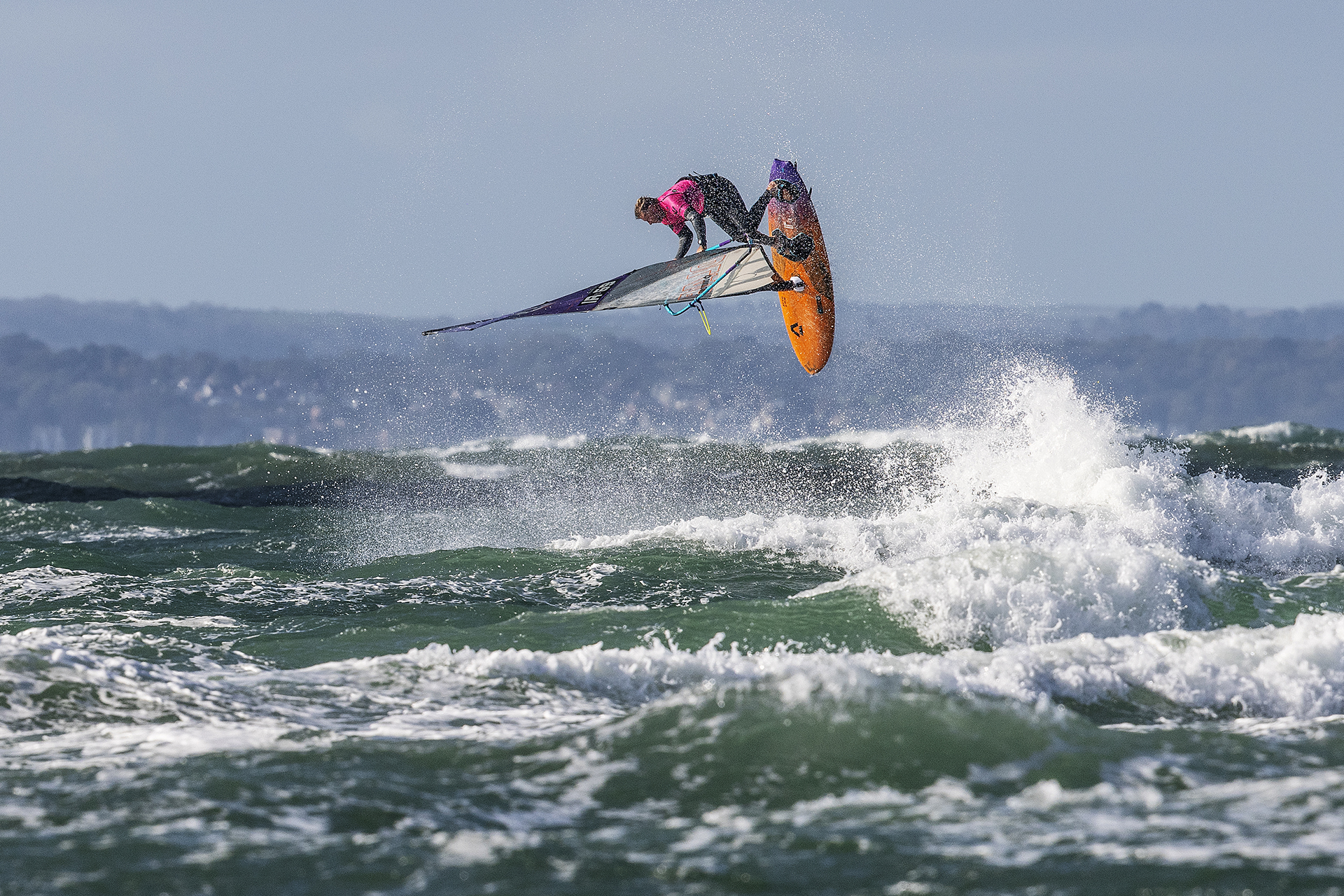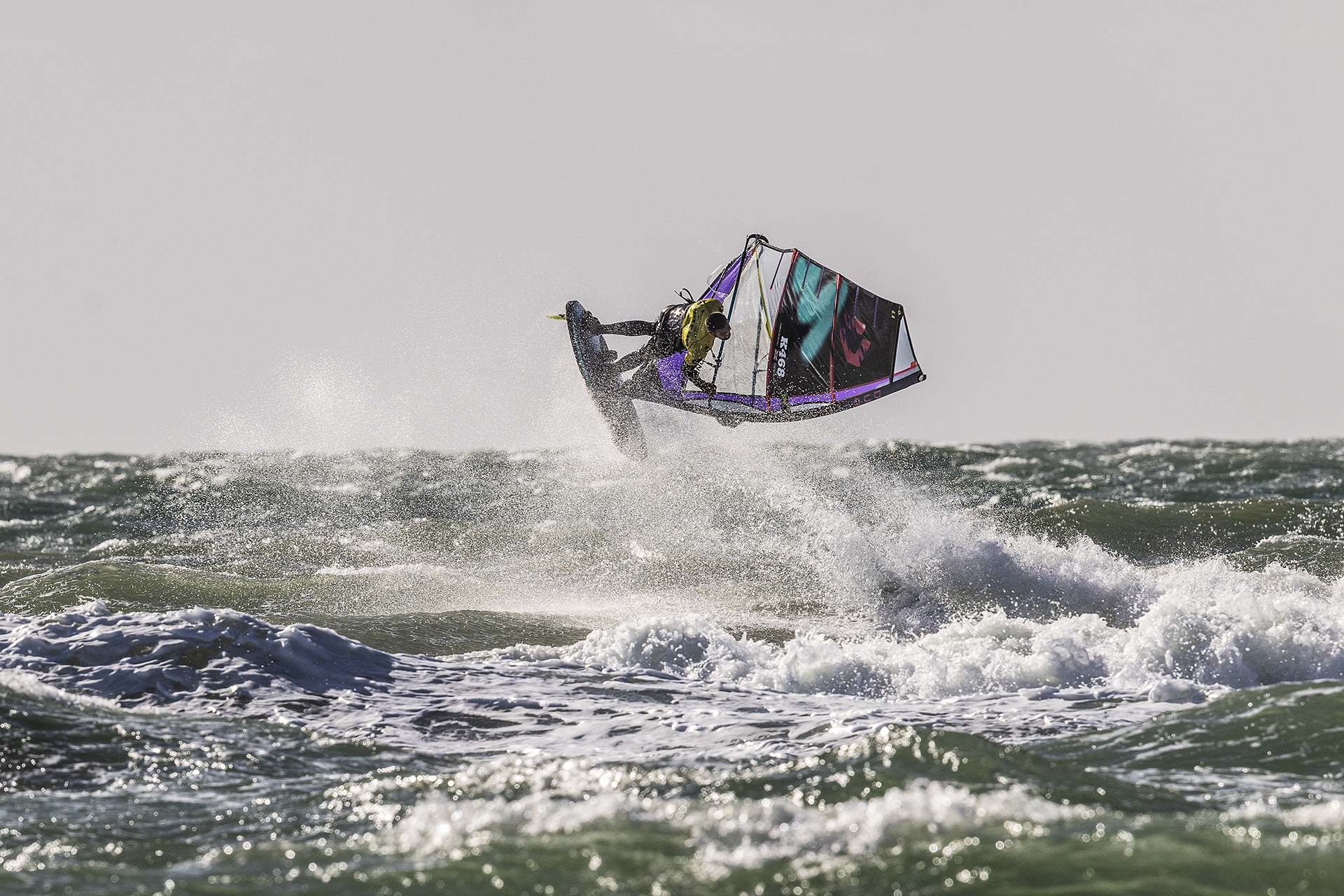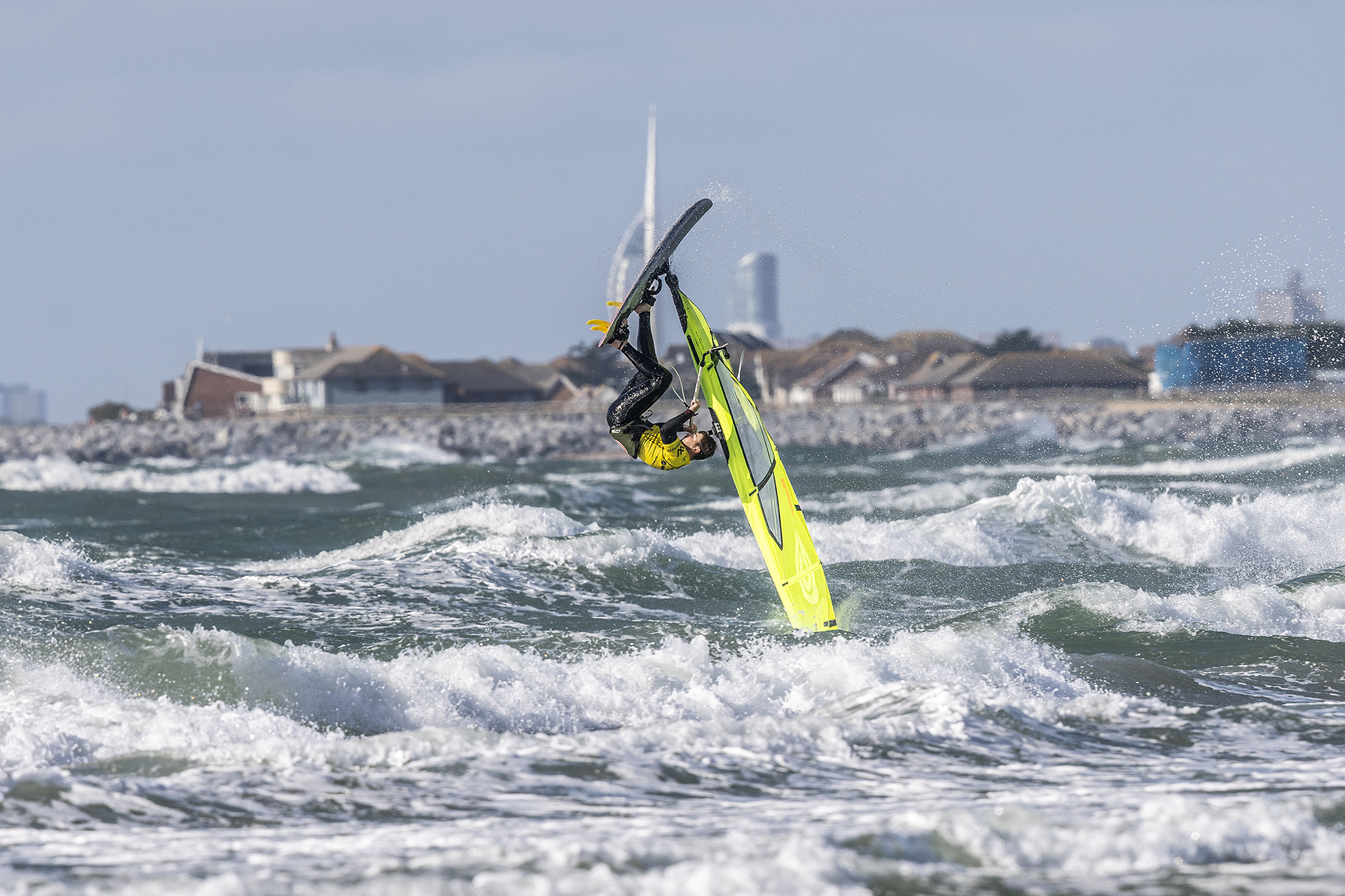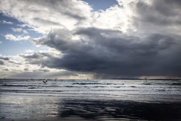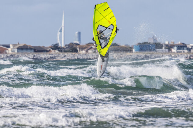 “The beating heart of windsurfing was laid bare for all to see down at West Wittering for the 2XS Wave Classic this weekend, the final leg of the biggest UK windsurfing tour we’ve seen in decades. The first day came in like a lamb, a small wave and not a lot of wind threatening to turn things sour. But the wind came, and the day went out roaring like a lion. Average sail size of choice, 4.2m to 4.7m. Waves weren’t huge, but big enough. The eighty or so competitors and many more spectators cheered and whooped as Lucas Meldrum, young local hotshot and world tour hopeful, launched a good thirty foot into the sky just upwind of the comp zone and dropped into a late, ballsy stalled forward.