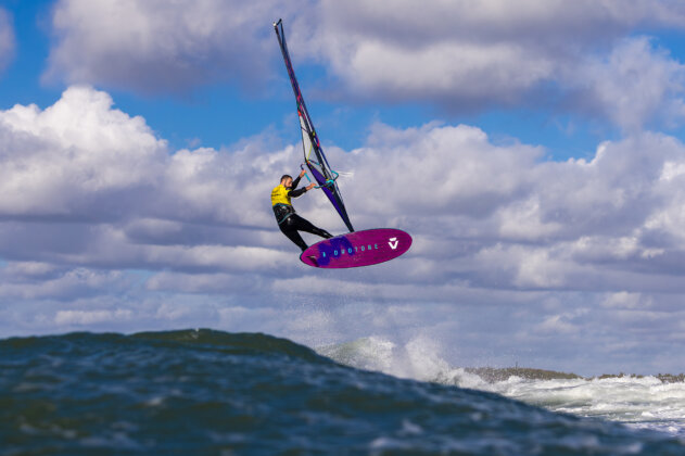 The crowd went wild… as Bubble on the wave behind eyed up his own section and went for a last ditch 360 attempt. The section flung him round the move and we cheered and groaned as he disappeared into the whitewater. Close, but not enough. So perhaps you can imagine how we cheered when his windswept blond locks appeared out of wave, hauling the sail back up. With just seconds left on the clock, the tour veteran pulled the 360 out of the jaws of defeat. All eyes went to the judges. Seconds stretched into minutes and for Lucas and Bubble, years must have passed. In the end, it was Lucas who took the win, a well-deserved end to an uncharacteristically rocky year on tour.