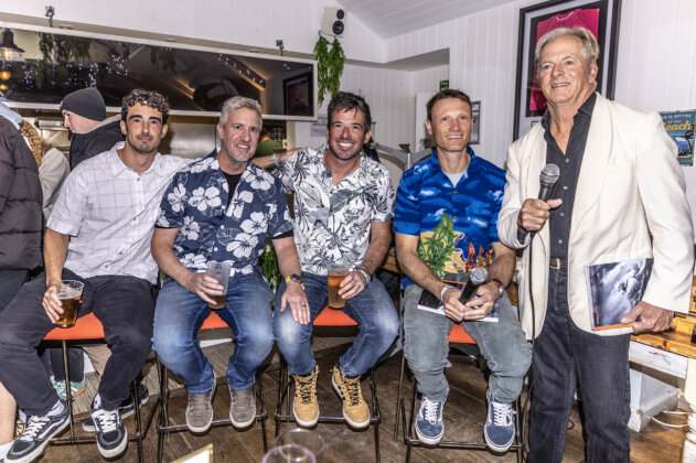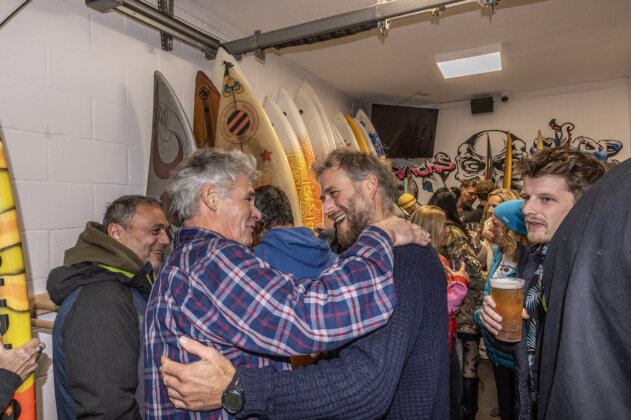 From that idea, came Windsurfer Magazine. A rage at the dying of the light, a bonafide middle finger to Zuckerberg and Musk and the cheap, drip-fed Matrix these Bond villains want us to live in. Beethoven’s Fifth Symphony and John Lennon’s Imagine have long been technically surpassed, their creators dead and gone and their mediums replaced by newer and flashier genres. But we remember them. Those opening chords of the Fifth send shivers down your spine and Imagine makes my mum cry. Creating something worth remembering is all anyone can hope to do. If Brawzi remembers his best air at Jaws, and a 12 year old grommet or two remembers that photograph, and channels Brawzi’s spirit into their first turn, first aerial, first hit of a closeout, then we have a sport that is alive and well. And it sure was alive that Saturday night down the Witterings. Peter Hart, elder statesmen of windsurfing known to all, and the finest journalist our sport has, introduced the group of legends who put together the mag to the assembled crowd. Lucas Meldrum, event winner and mag graphic designer, Tris Best, editor, Daniel Macauley, marketing man, and Oli Sargent, the guy bankrolling the whole thing. James Cox, far too humble and mysterious to admit to being their web guy, lurked in the background. From there, as the beer flowed and the good times rolled, Harty moved the crowd through to the boardroom where a veritable arsenal of vintage windsurfing boards had been assembled. Their owners were interviewed, their storied histories brought forth to the crowd and a slice of our sport’s history made into legend. The night, I must admit, gets a little hazy from there. I must be getting old, or maybe I had one too many knocks on the head during my post-defeat windsurf on Friday. There’s nothing else it could be…
