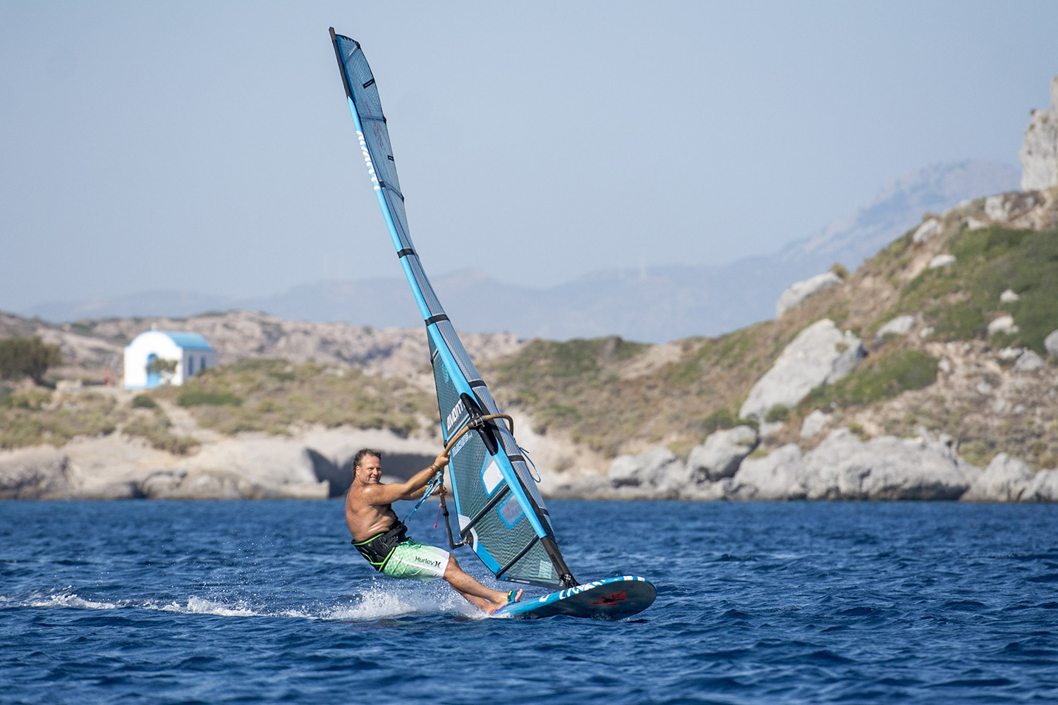 I consider it an absolute privilege to spend time in Kefalos. I’ve been enjoying windsurfing holidays in Kefalos Bay for two decades now; it’s hard to get tired of consistent thermal winds, glassy flat water, the super relaxed friendly atmosphere and the stunning scenery! My wife, who isn’t a windsurfer loves Kefalos too. Although the idea of keeping this quiet spot a secret certainly has its appeal, I’ve found over the years and my friends can attest to this, that I simply can’t seem to stop talking about it! Why not give it a try; I’m sure you’ll be very glad that you did!