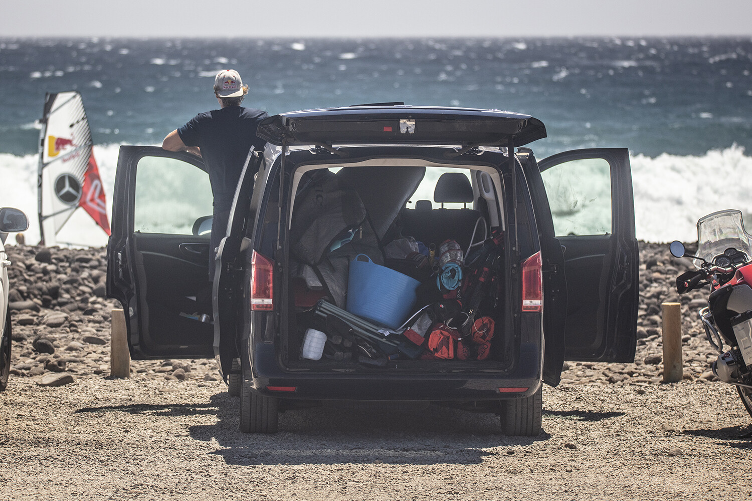 I’ve been sponsored by Starboard for the past five years! I love the way they work for me and they make some really light boards. Two years ago they made a Liam Dunkerbeck UltraKode Pro model 65 litres, exclusive for young rippers and for lightweight people, it goes amazing in strong Pozo conditions! Also, Severne sails have been supporting me for five years too. In 2020 they made a new model called the RedBack, also a perfect sail for small and lightweight riders. I really like that Starboard and Severne are thinking of kit for smaller and lighter people, especially us kids, as it helps us progress in windsurfing easier and faster. Also, I’m really happy that this year I made it into the Red Bull team! I am also riding for Mercedes-Benz now, the same as my father, plus the Dunkerbeck windsurf centre in Gran Canaria!