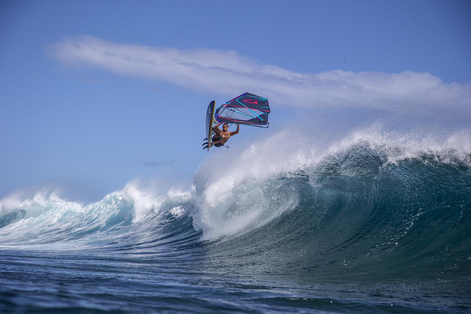 It is pretty cool to be with the team as they have a lot of knowledge about riding in the waves, so I could listen and learn a lot from what they had to say. I have always windsurfed in the waves, but I like to learn, especially when we are at a new spot like One Eye or any reef break. I will never find a wave like this in Europe. The swell period is so big, the waves break on the reef and the wind is light. You need to understand the reef as well and know exactly where you need to be on the wave. These guys know that more than me, so I just tried to learn as much from them as I could. On the water they have a great level, so I can enjoy watching them sail as well as learn at the same time.