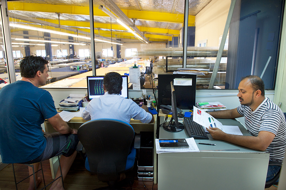 There are a lot of steps to arrive at the point that a sail can be rigged on the beach to plug and play and enjoy all the great feelings we have when windsurfing and herein I hope to give you an insight of the production process. The production of a sail starts at the development. This is usually directed by the feedback of the clients who use our final product and of course, the top PWA pro riders who test the gear to its limits and sometimes beyond!. After hours of testing on the water, jetting around the world to discover different conditions, flying to events to be with the riders, jumping on the race course to test, simply sailing with recreational windsurfing friends on a daily basis and meeting with dealers and distributors, finally the whole feedback is put together. The sail is designed on CAD files, graphics are defined, material organized with suppliers from different parts of the world, samples to test, test, and test again, by doing all what you just read over and over again.