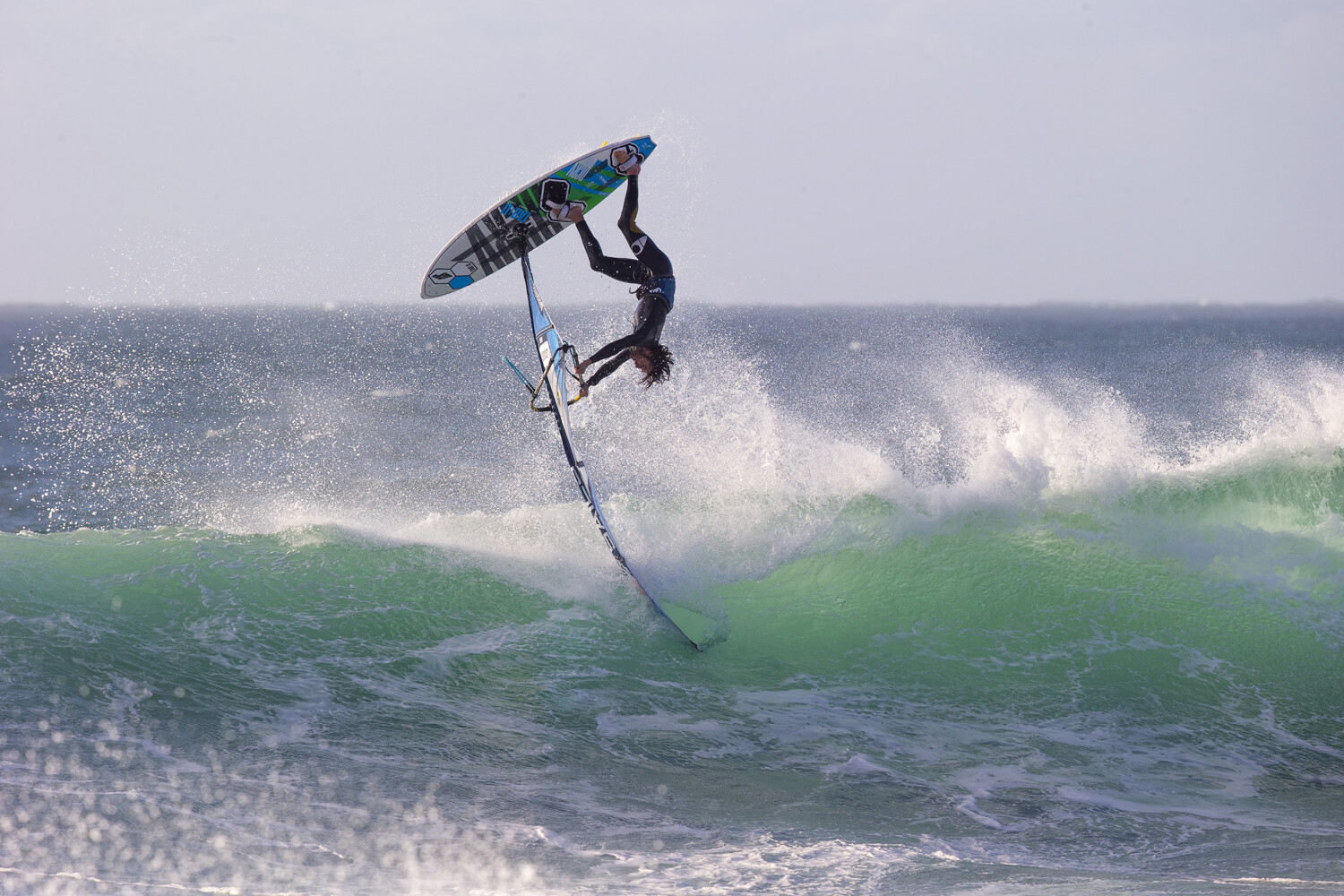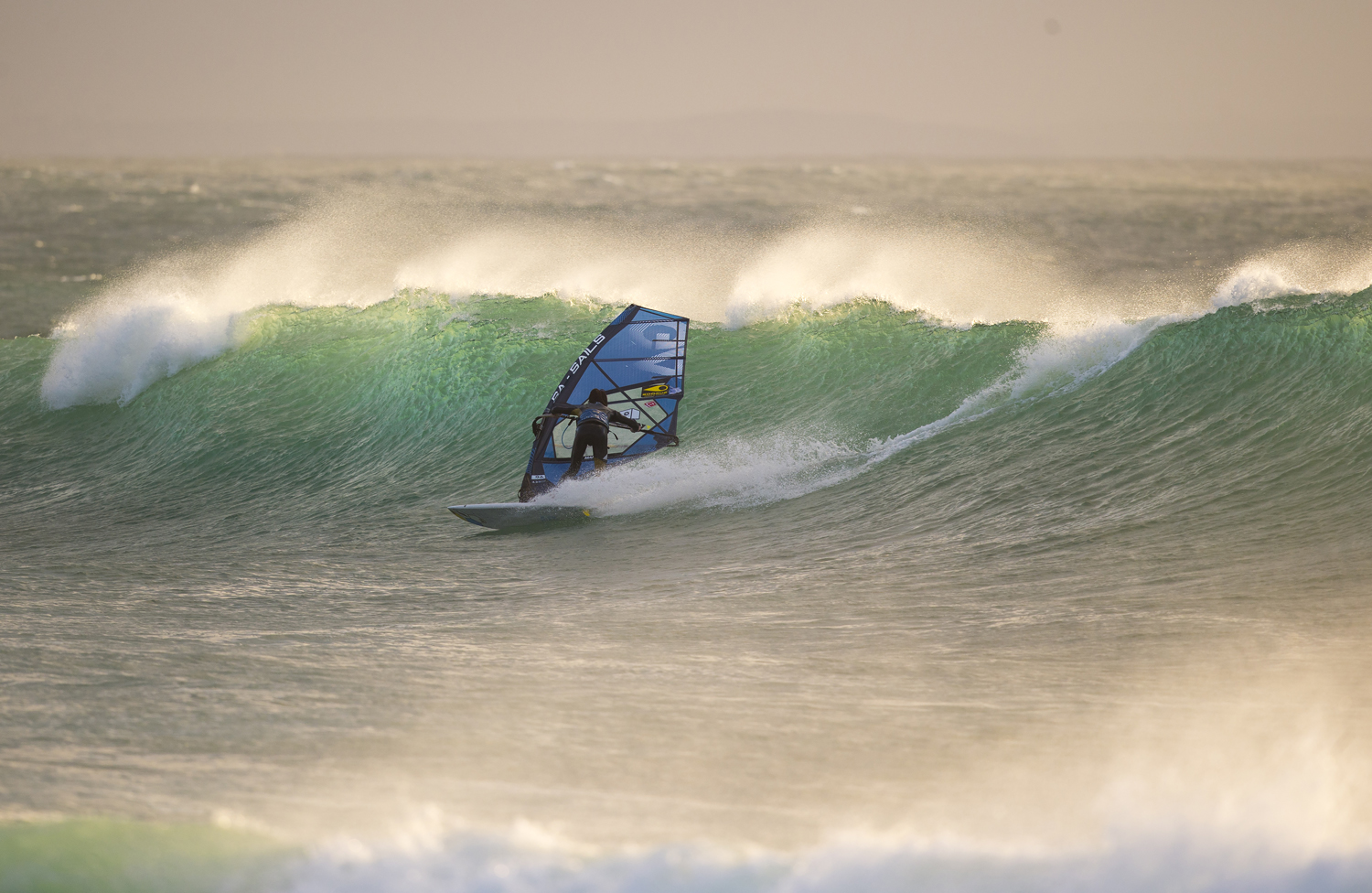 Thomas wasted no time rigging while the camera crew assembled all the gear to capture the session to best effect. Traversa obviously loves to sail big waves, but he is equally happy ripping apart a head to logo-high punchy beach break like this. The weird thing was that aside from a few surfers we were totally alone. Not another windsurfer to be seen with these amazing conditions right in front of us. Alone on the water, Thomas sailed until dark, picking off any wave he wanted and ripping most of them to shreds.