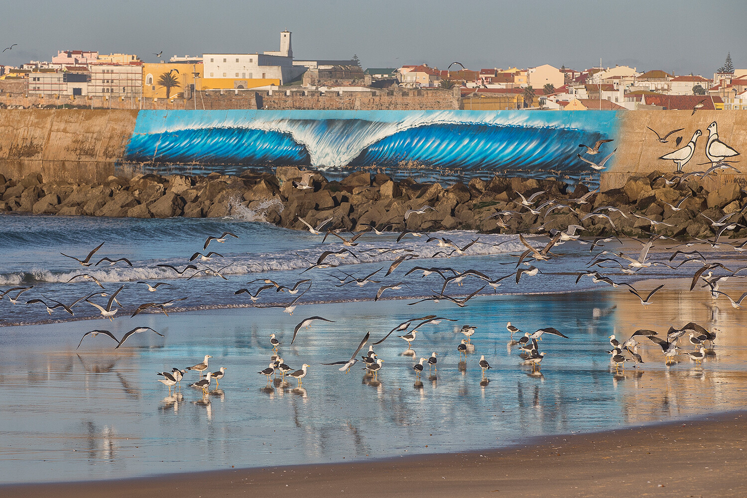 On the windsurfing side of things, the conditions kept looking kind of half decent and when the sun occasionally broke through the clouds the murky Atlantic would light up and the wind would veer offshore. But then the clouds would roll back in and we had this kind of side-shore un-sailable chaos. Big gnarly waves, a huge rip on the inside and exactly the sort of conditions not to be toyed with. Lots of risk, but not really so much reward for what was on offer. It was a tough decision but by 2:30 p.m. we had to opt for Plan B…a quick forty minute drive down to Peniche and another famous surf break, Supertubes! I was actually happy with the call. I had managed to see enough of Nazaré to know I want to return on a bigger and better day, so why risk a gnarly situation on a cloudy day with pretty ugly waves.