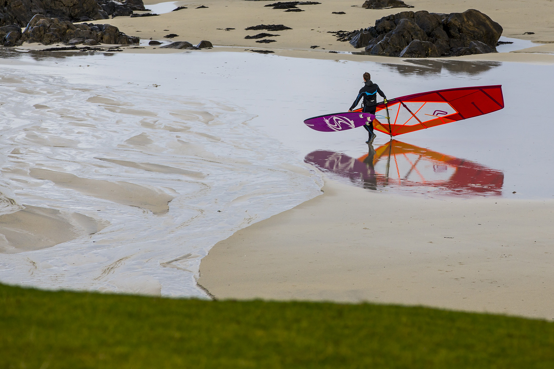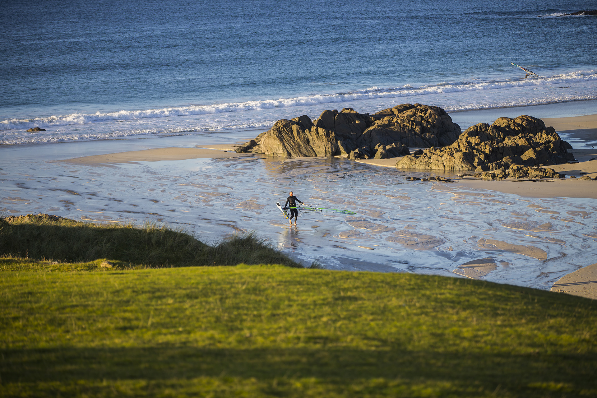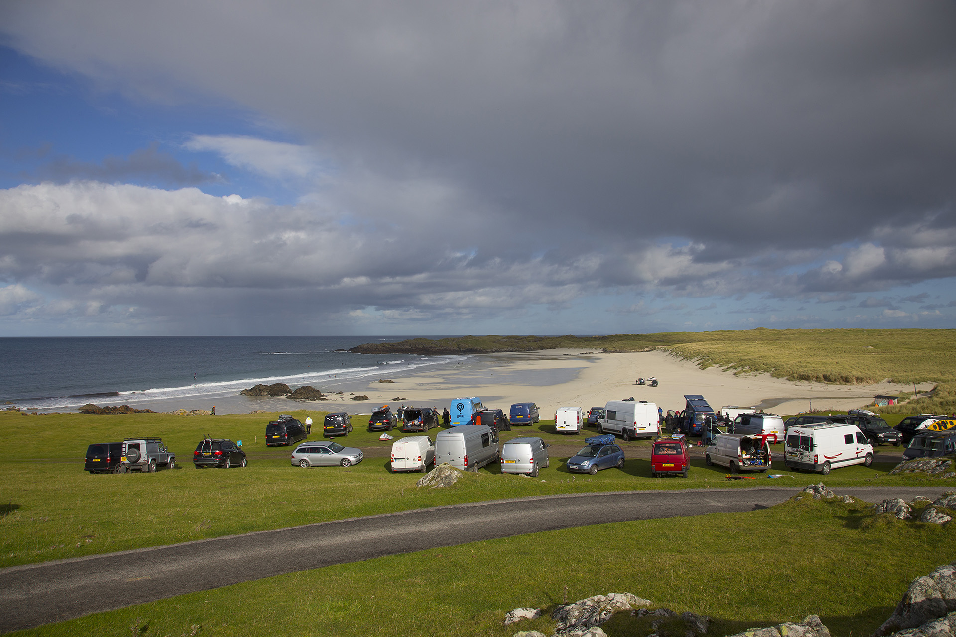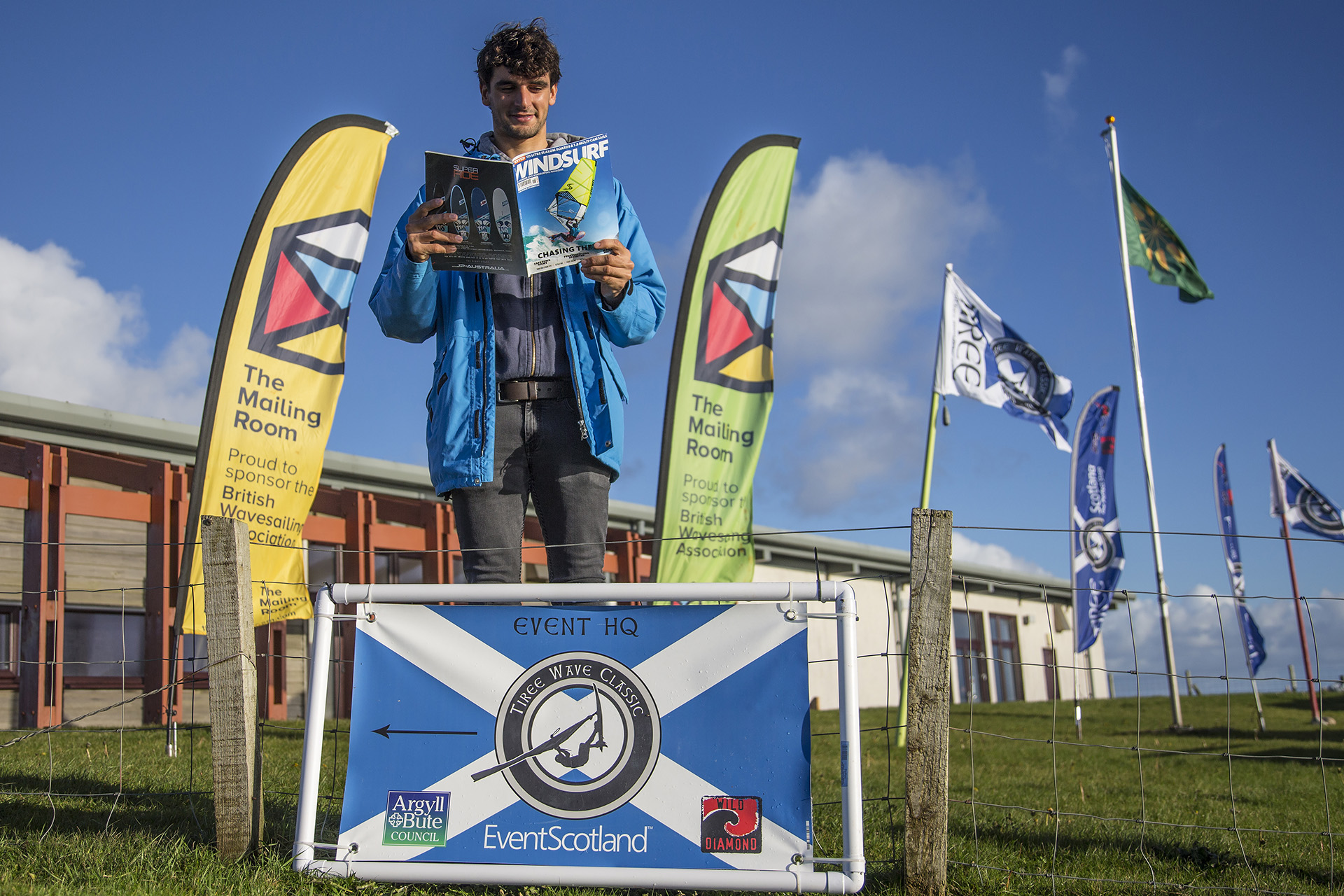 A massive fleet of over 80 competitors have assembled in Tiree for the 32nd year of the Tiree Wave Classic. Storm Callum caused havoc, with many entrants  stuck in Oban after the Cal-Mac ferries to Tiree were cancelled. Those who were lucky enough to arrive early scored 40-60 Knot winds and wild conditions at the Maze and Crossapol. Today after registration and event briefing, the fleet assembled at Balevullin to check out the conditions. Sun wind and waves were on the menu but not quite enough for official competition. Check out the exclusive gallery below of shots from our roving reporter John Carter.