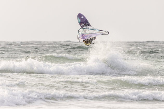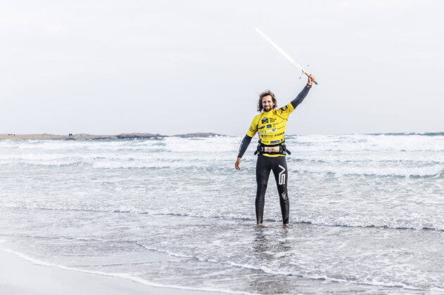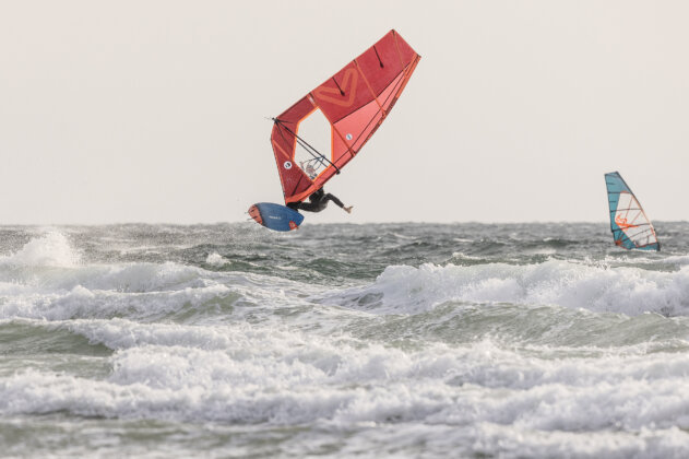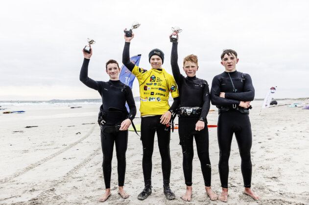 The conditions were firing and the beach crowd gathered to witness the showdown. Phil threw down a tweaked push loop, a tabletop forward, and some powerful wave rides but Dieter responded with a massive stalled forward, a tweaked pushie, a double attempt, and a perfect wave 360 that ultimately sealed his victory. Lucas edged out Ben to claim third place on the podium.