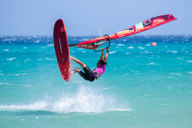 LN: “Yes, people can go out. There are geckos, there’s 360s. I do it sometimes too. If there’s no wind for a while, I’ll just take my bigger sail, big board, and go out and just jump around and have some fun. It’s all about the sail feeling at the end of the day. Even going out in 10 knots can make you improve a lot.”